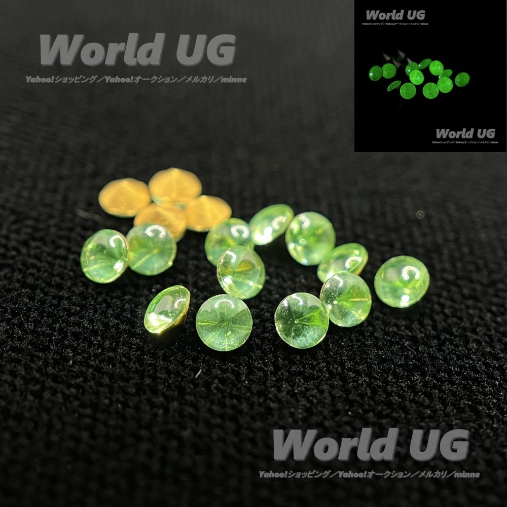 (1)UV-LEDを照射するとi-Phoneで撮影できるほど緑色に発光する(UV-蛍光灯だとウランガラスでなくても光るためUV-LEDを使用)