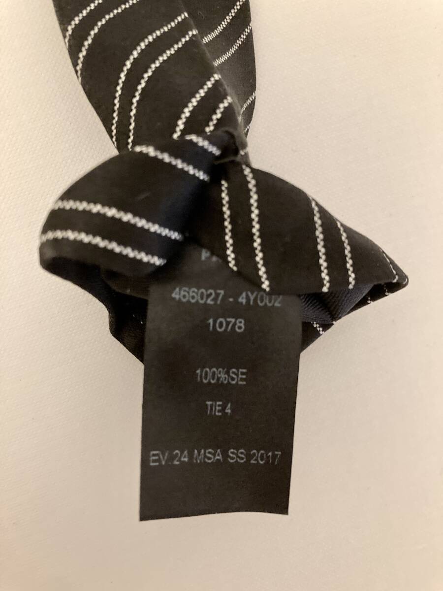 商品説明 | ●000 ● 色:黒 ●品番:466027-4Y002----- ●サイズ:フリー - ●【剣先4.5cm】※素人採寸です。 ● フランス-イタリア製 ●生地:シルク100% ●付属品:なし ● 状態は数回試着程度の状態の良い古着です。シワが多少あります。新品ではありません多少の使用感がございます。※ショー フィッティング サンプルとして用意され使用された非売品です。※プレスストック品です。 |