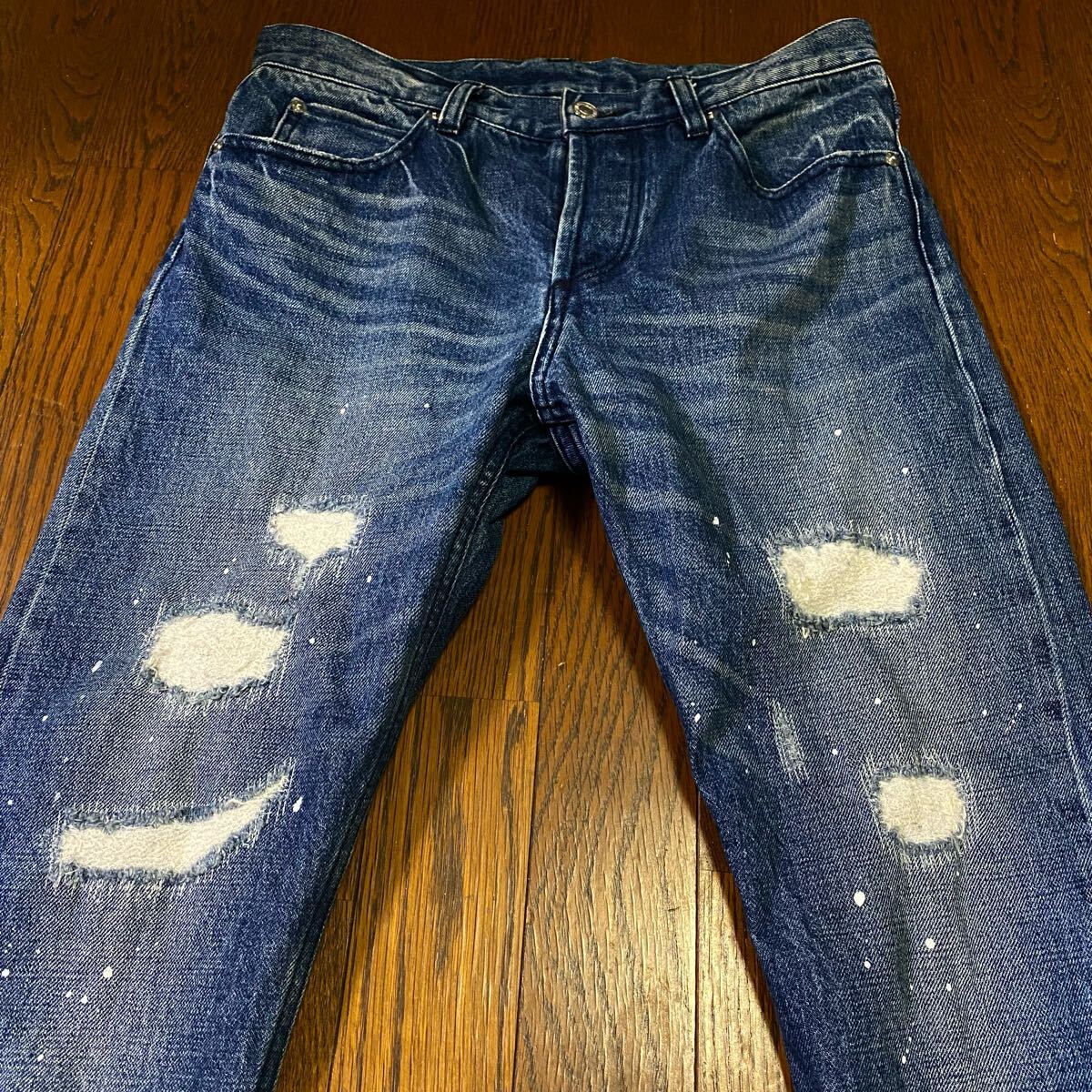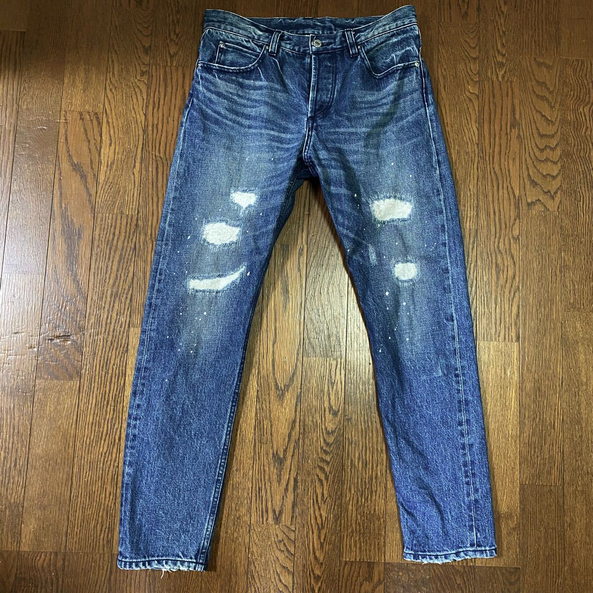 程良く入った加工に、ペンキをプラス・全体的なネイビーステッチのクールな印象とのバランスが良くファッション感のあるデニムに仕上がってます。
