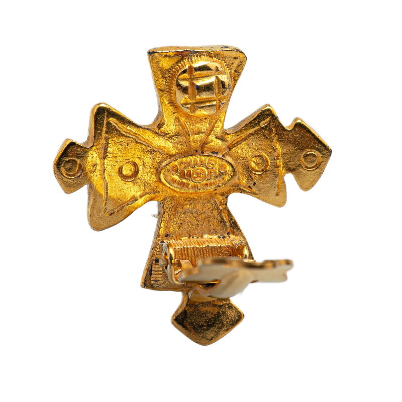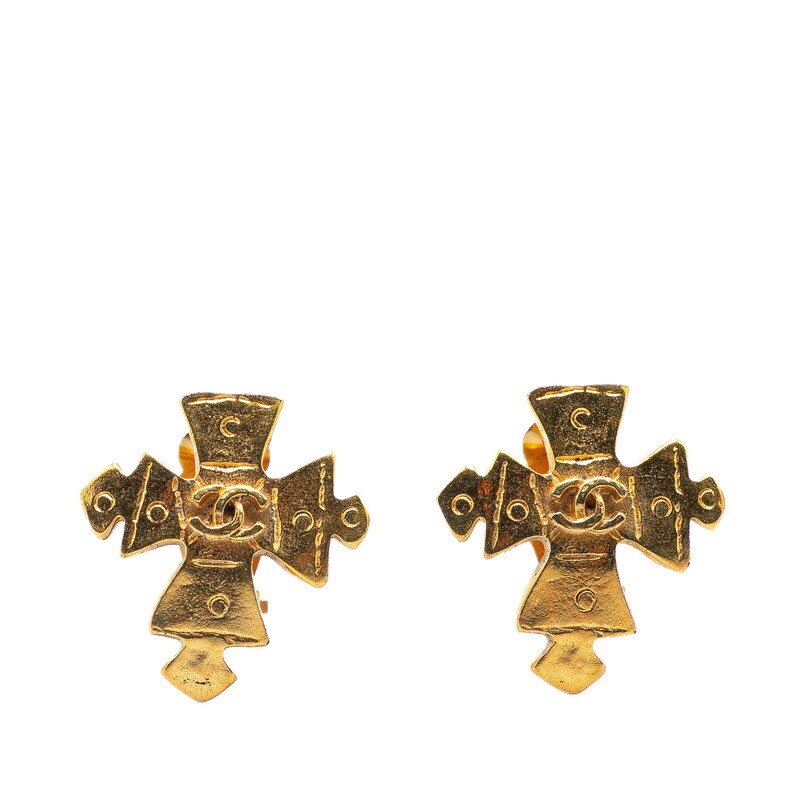 シャネル ヴィンテージ ココマーク クロス 十字架 モチーフ イヤリング ゴールド メッキ レディース CHANEL 【中古】