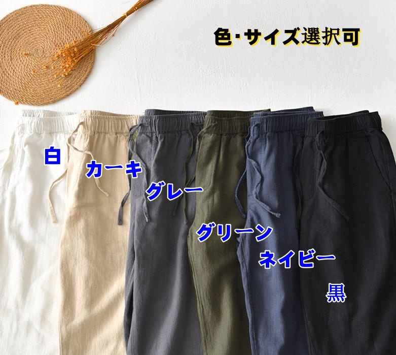 リネンパンツ メンズ*新品 綿麻 サマーパンツ スラックス 春夏服通気 海パンツ イージーパンツ ズボン【L8223】グリーン 2XL