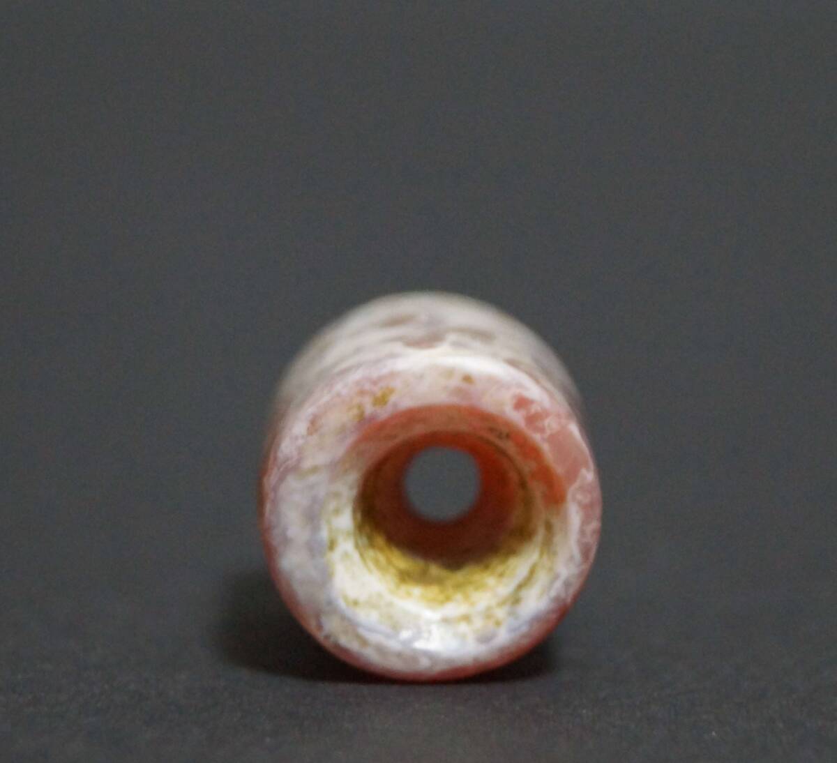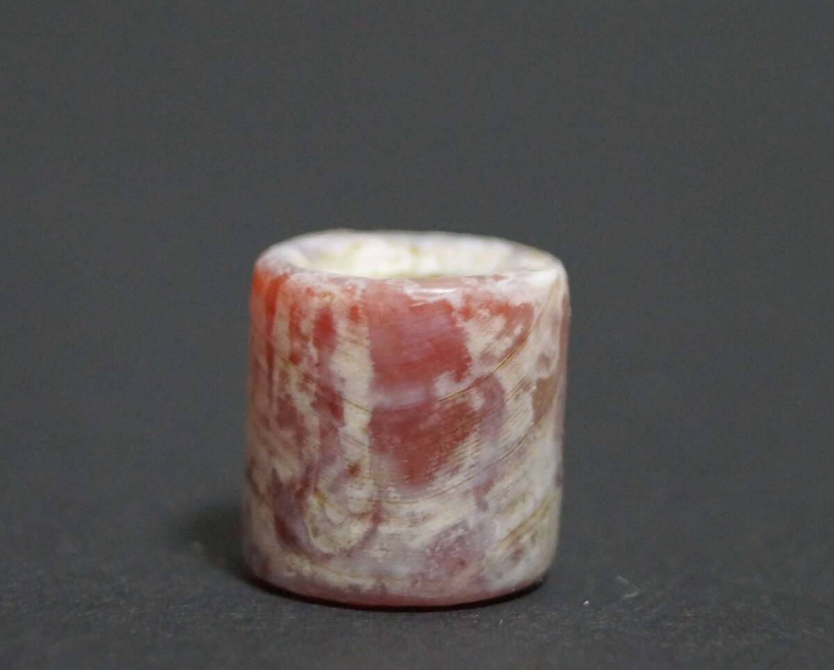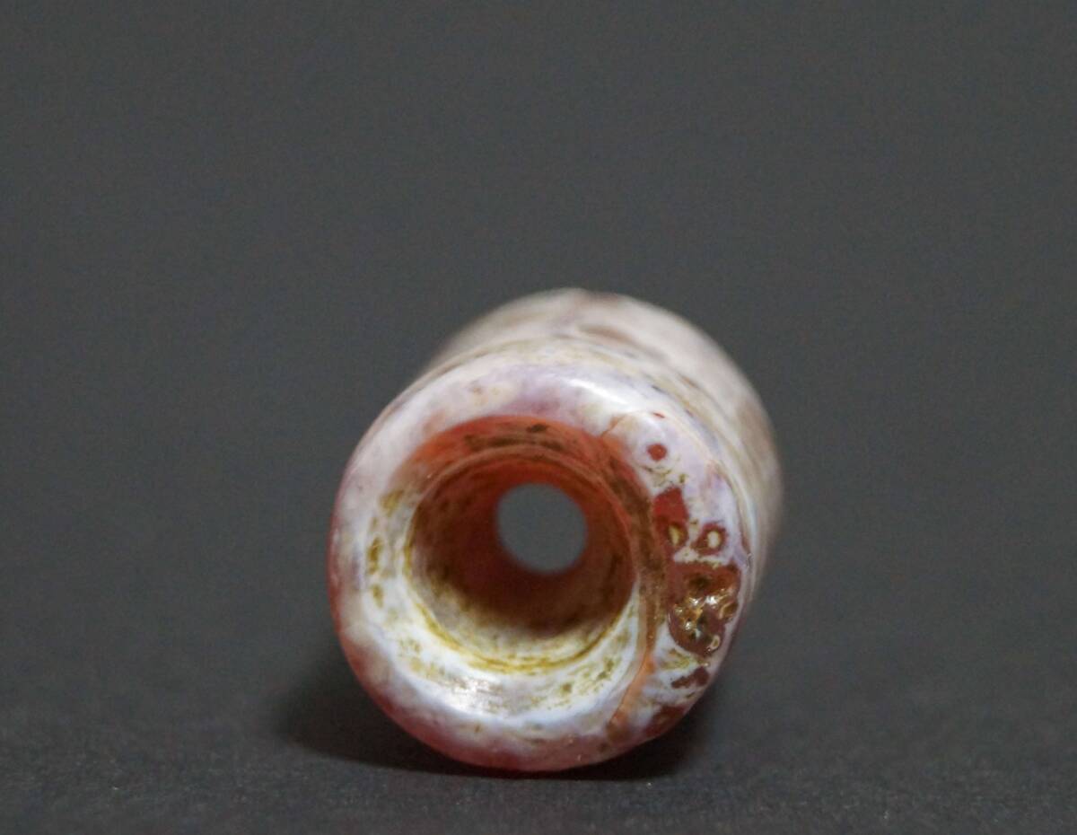 【寂】オールド西アジア 老メノウ瑪瑙 根付 緒締玉 アゲート提げ物 Dziビーズ 装飾品 径1.4cm★美しい石目★s70610