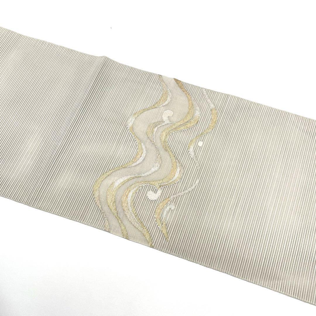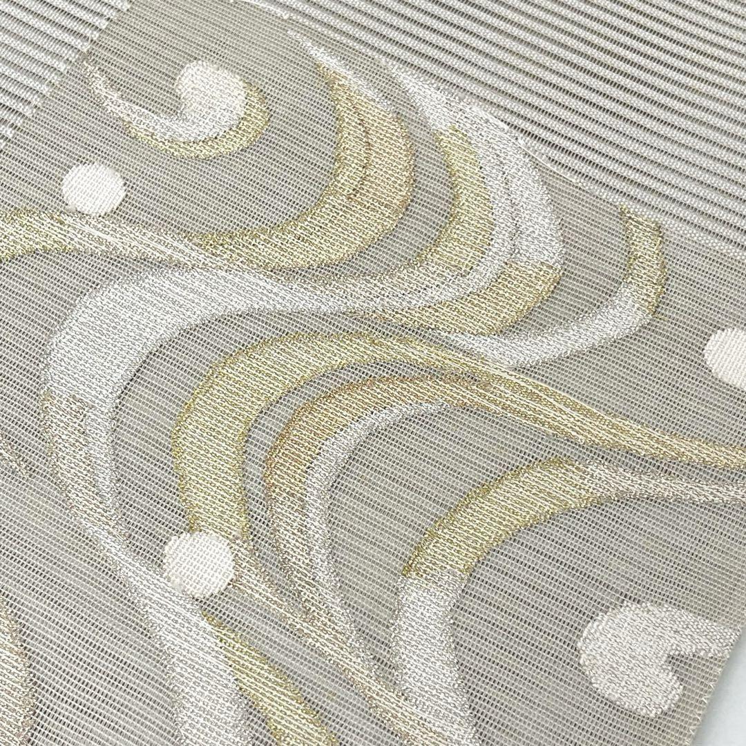 上質な絽綴れの織りに、淡いグレー地と白×金の配色が美しく、夏のフォーマルにも対応◎