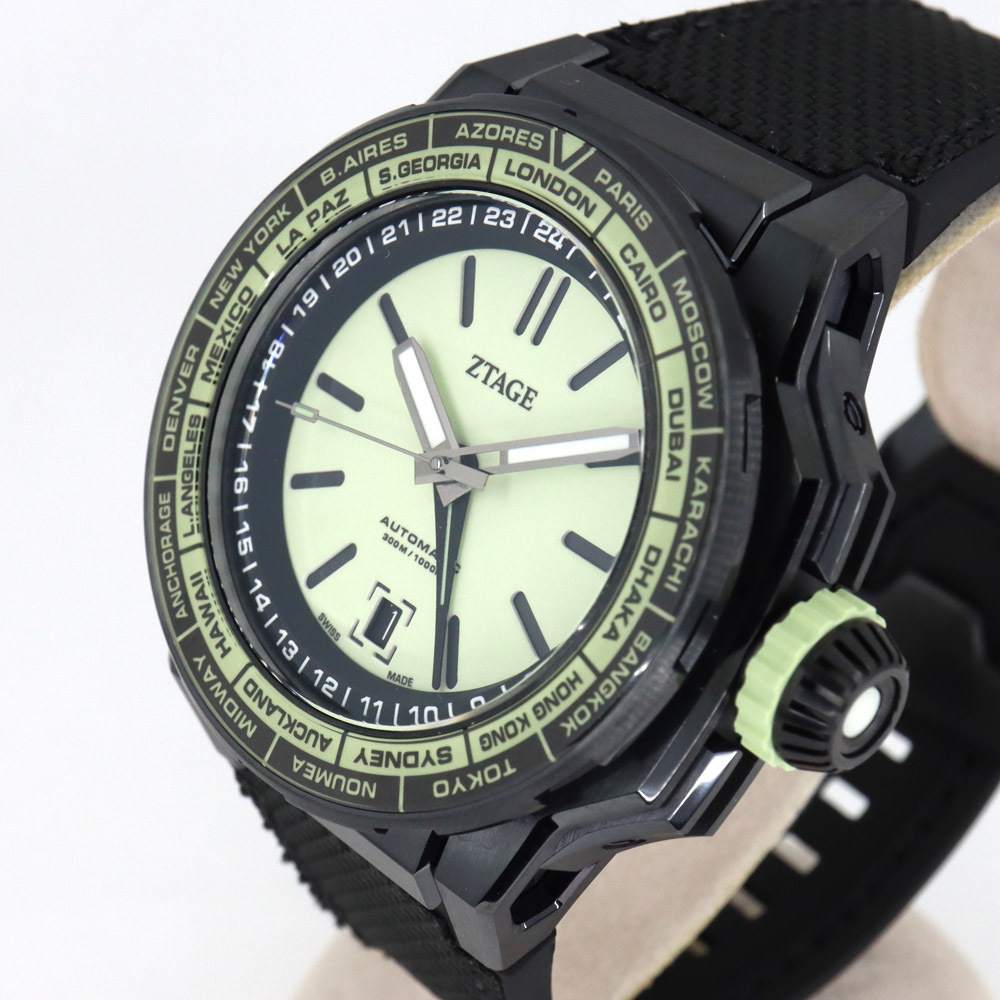 【栄】ステージ オーロラ 24-0562 グリーン 腕時計 自動巻き SS PVD ラバー ZTAGE メンズ