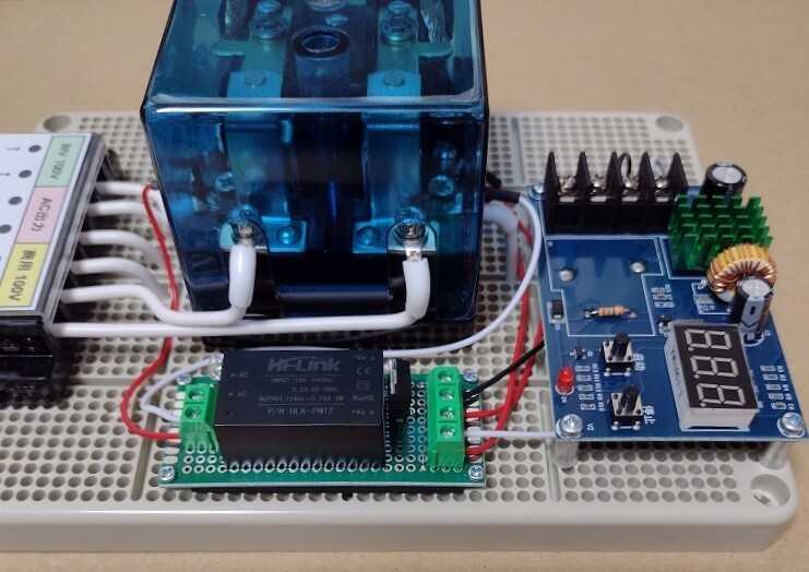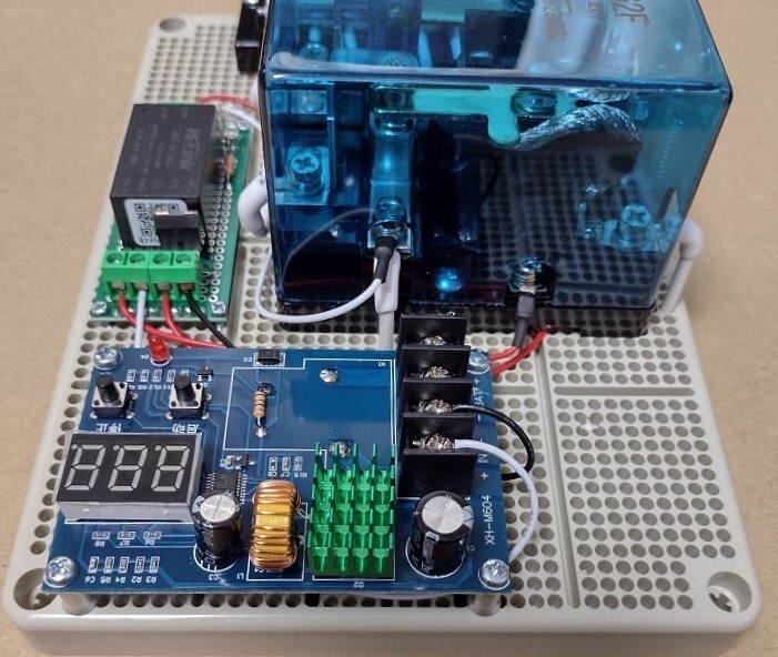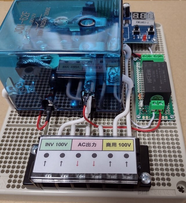 ・本装置はバッテリー電圧を監視し、設定電圧に達するとインバーターのAC出力と家庭用AC出力を自動で切り替える装置です。
