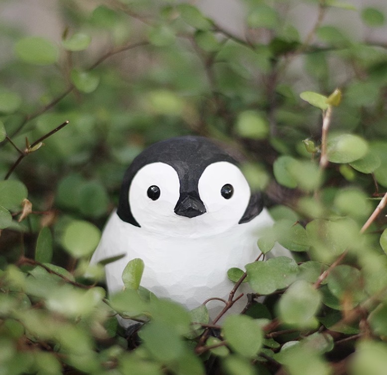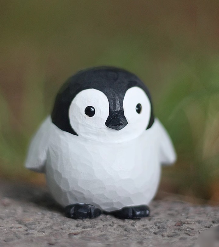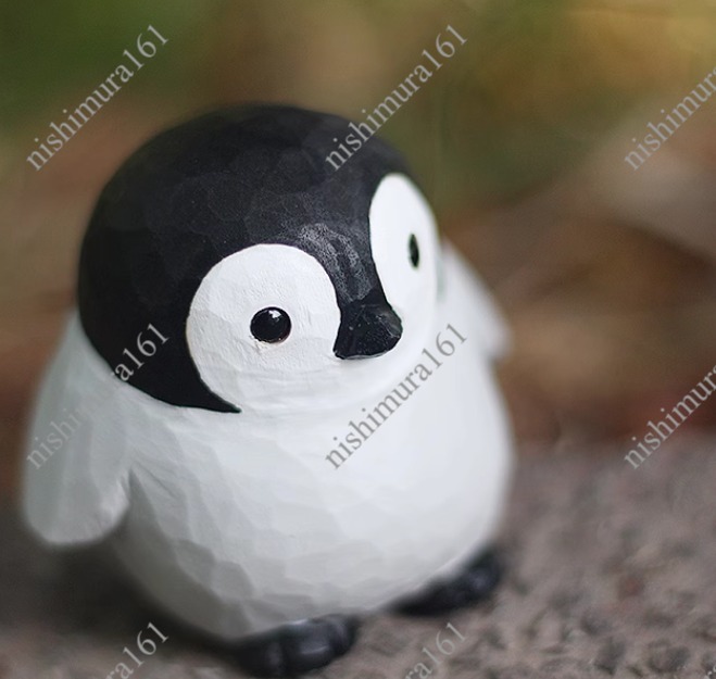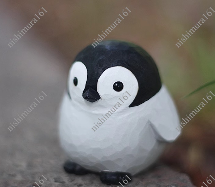 ペンギン オブジェ★手作り新品★木彫り★お庭飾り★可愛いマスコット★インテリア小物★ガーデニング★置物★プレゼント★ハンドメイド
