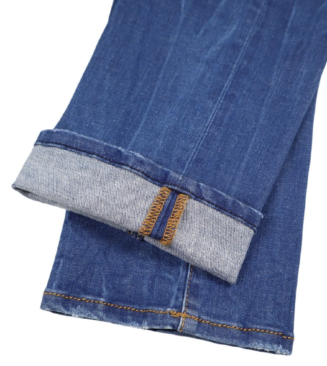 デニム本来の経年変化による「ラグジュアリーな風合い」と「ヴィンテージ感」は素晴らしく、さらに職人が 1本ずつ丁寧に加工を施し「緻密でリアルなダメージ感」を表現。加えて「リペア加工」を施しておりますので素肌が見えず、上品に仕上がっています。