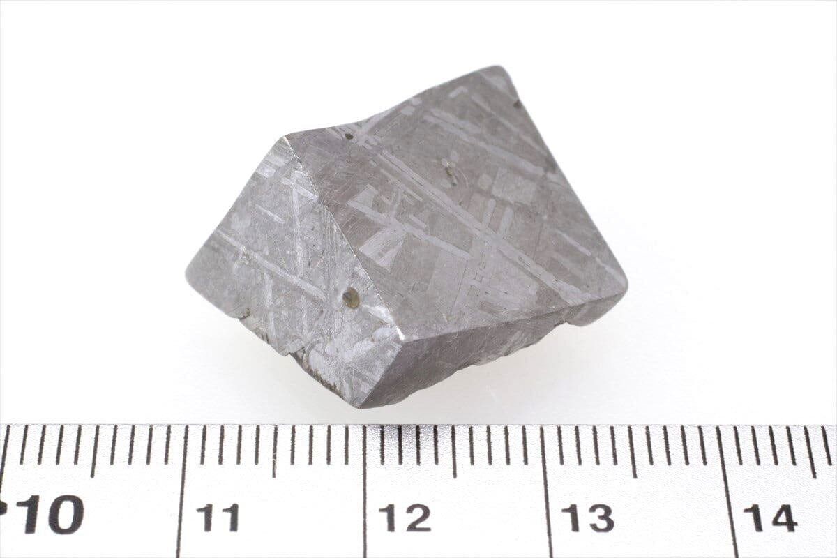 オクタヘドライトという名前はテーナイトの結晶格子の角にカマサイトが成長し八面体(オクタへドロン)構造になることに由来しており、酸処理を施すとカマサイトよりも酸に溶けにくいテーナイトが浮かび上がり特徴的な模様のウィドマンシュテッテン構造が現れます。ウィドマンシュテッテンとは構造を一番初めに論文として発表したカウント・アロイス・フォン・ウィドマンシュテッテン氏からきています。