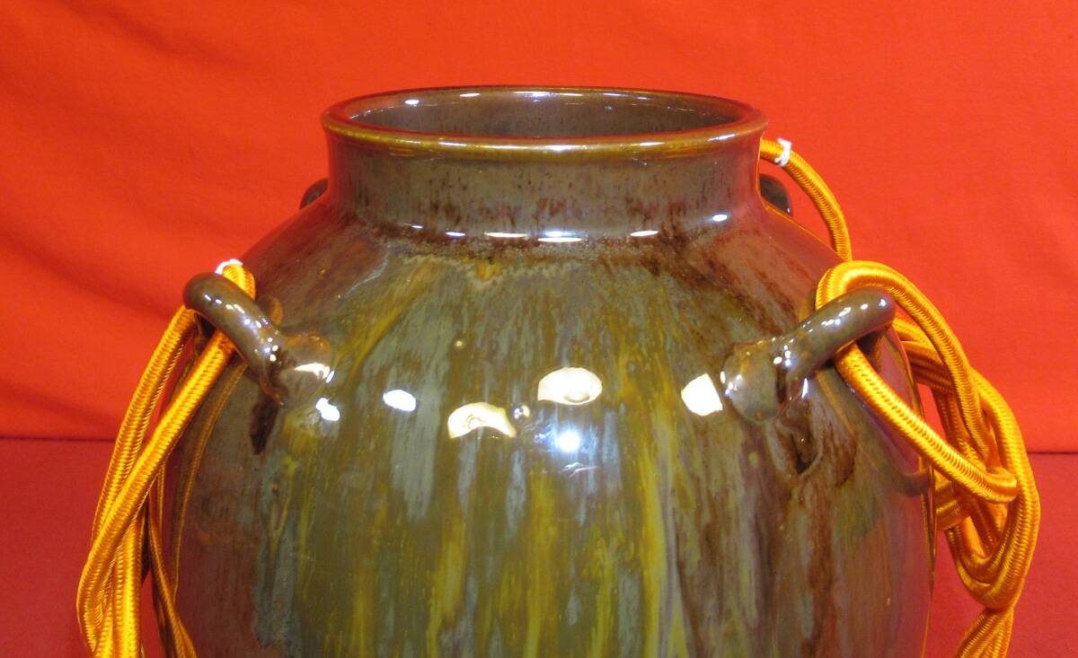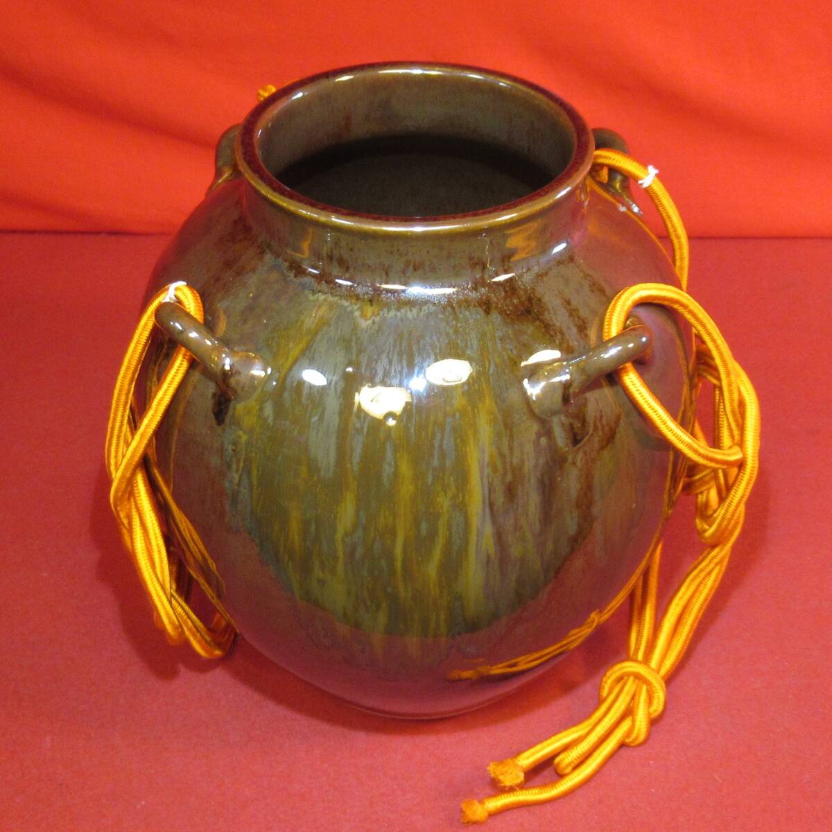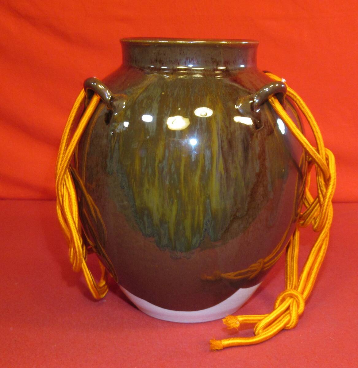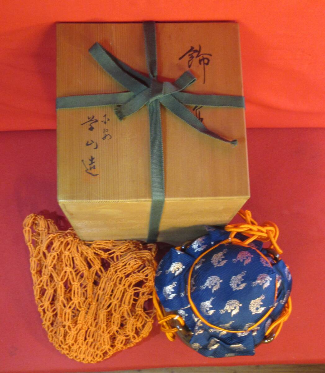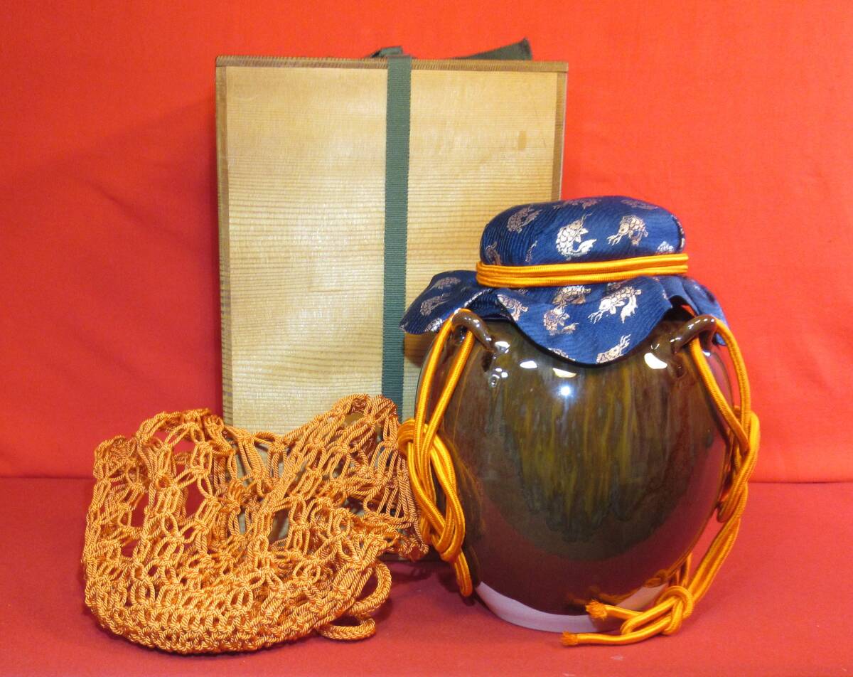 茶道具『京焼・清水焼 飾壺「平安草山造」高さ26㎝ 共箱 口覆仕服荒磯文 飾紐』飾茶壷 四耳壺 炉開き 口切 茶事 七事式 茶道教室 千家十職