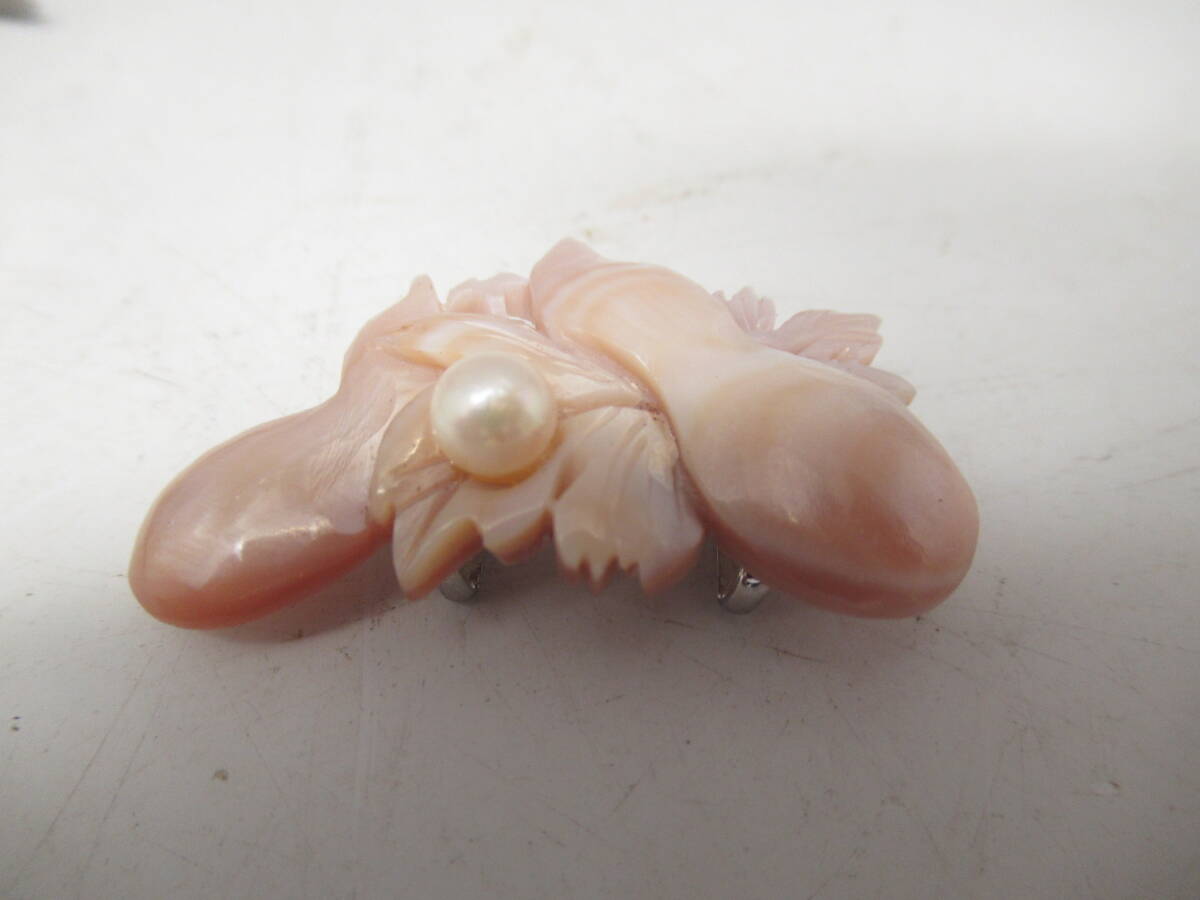 昭和レトロ 帯留め 真珠母貝細工 マザーオブパール 瓢箪モチーフデザイン 昔の和装小物 中古品