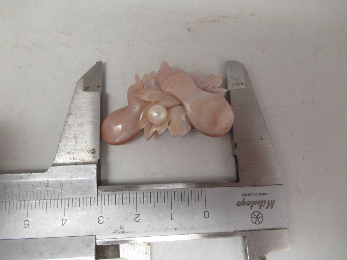 昭和レトロ 帯留め 真珠母貝細工 マザーオブパール 瓢箪モチーフデザイン 昔の和装小物 中古品