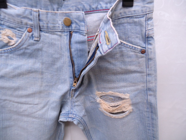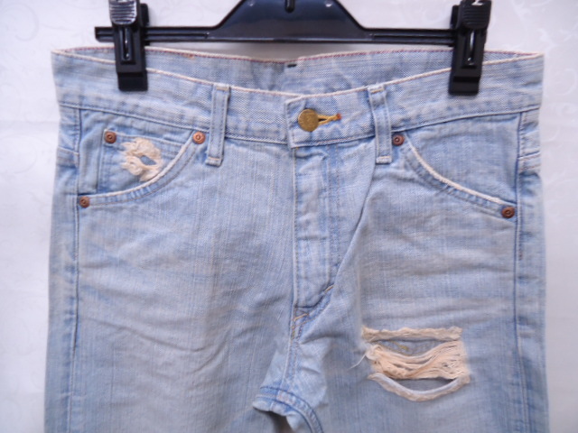 【KCM】MATO-155-25★ワケあり(長期保管品)★【Lee/リー】レディース ダメージ加工 デニムパンツ ジーンズ サイズ 25 ライトブルー系