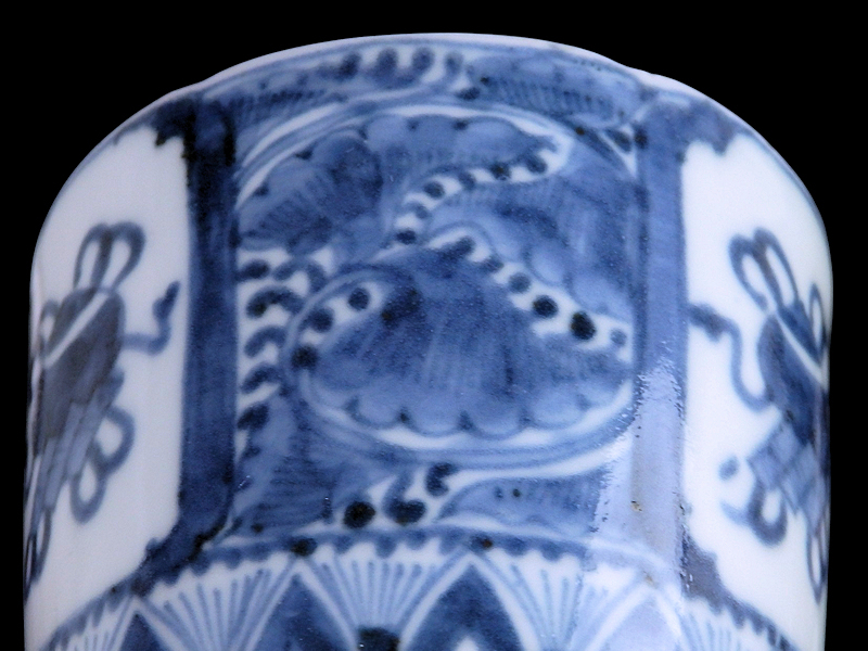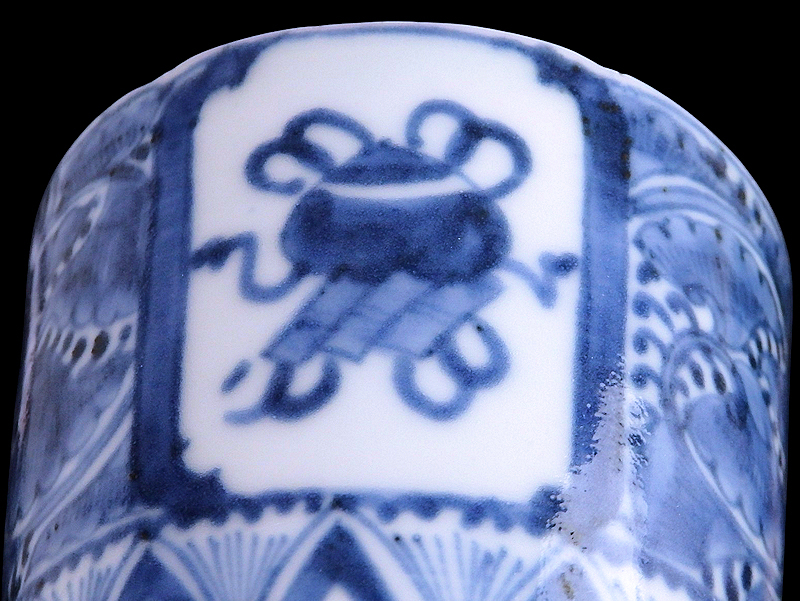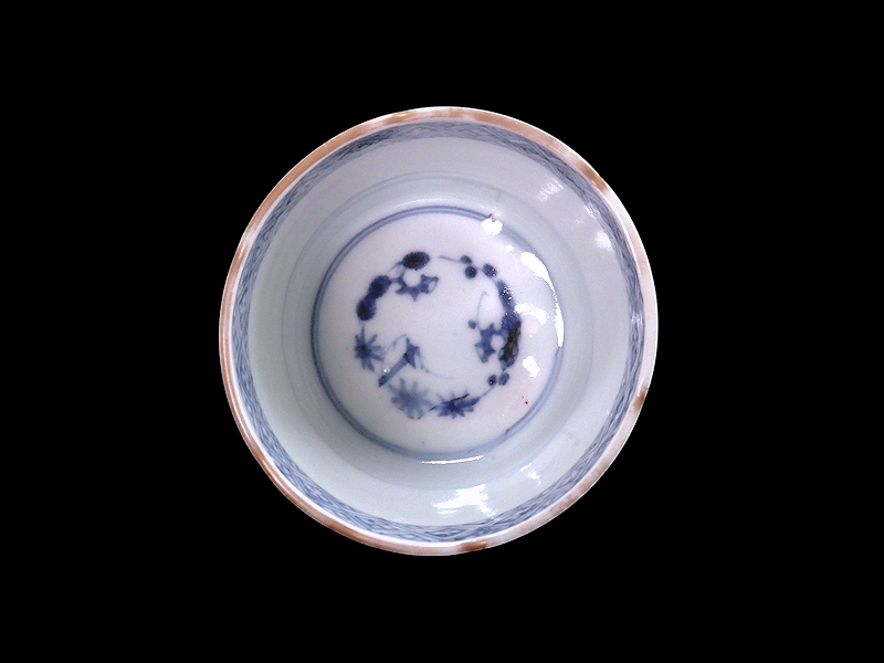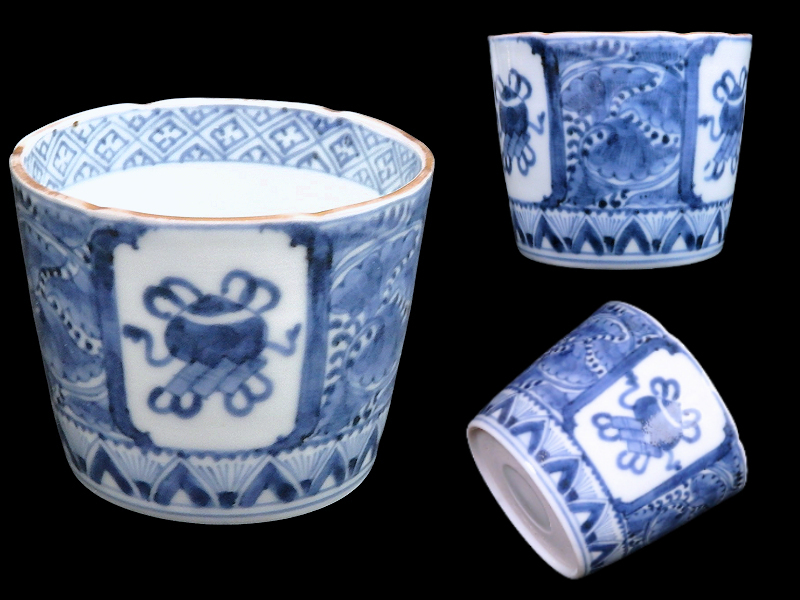 ★華心★ CYj-D560mS 古伊万里 染付 窓絵 宝珠に宝巻の図 蕎麦猪口