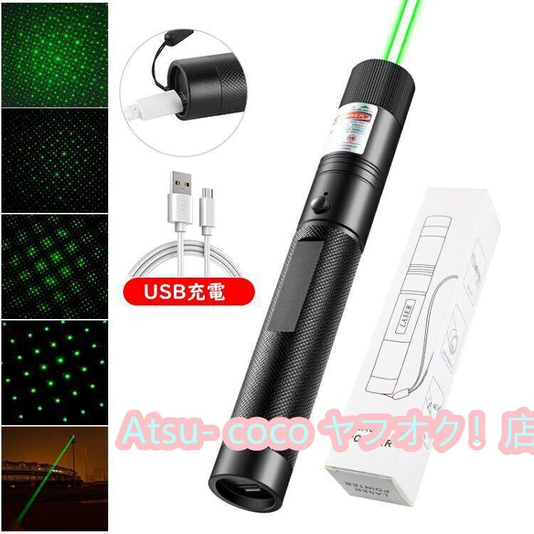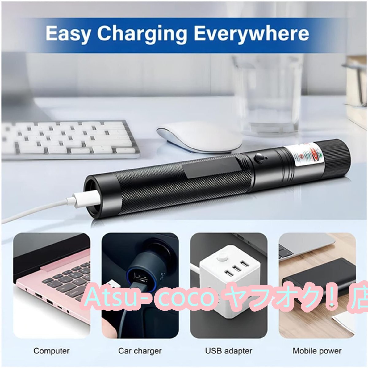 【新品未使用】 軽量LEDライトレーザー懐中電灯 USB-C充電 防水 アルミ合金製 グリーンレーザー 登山/キャンプ 方向指示器 強力