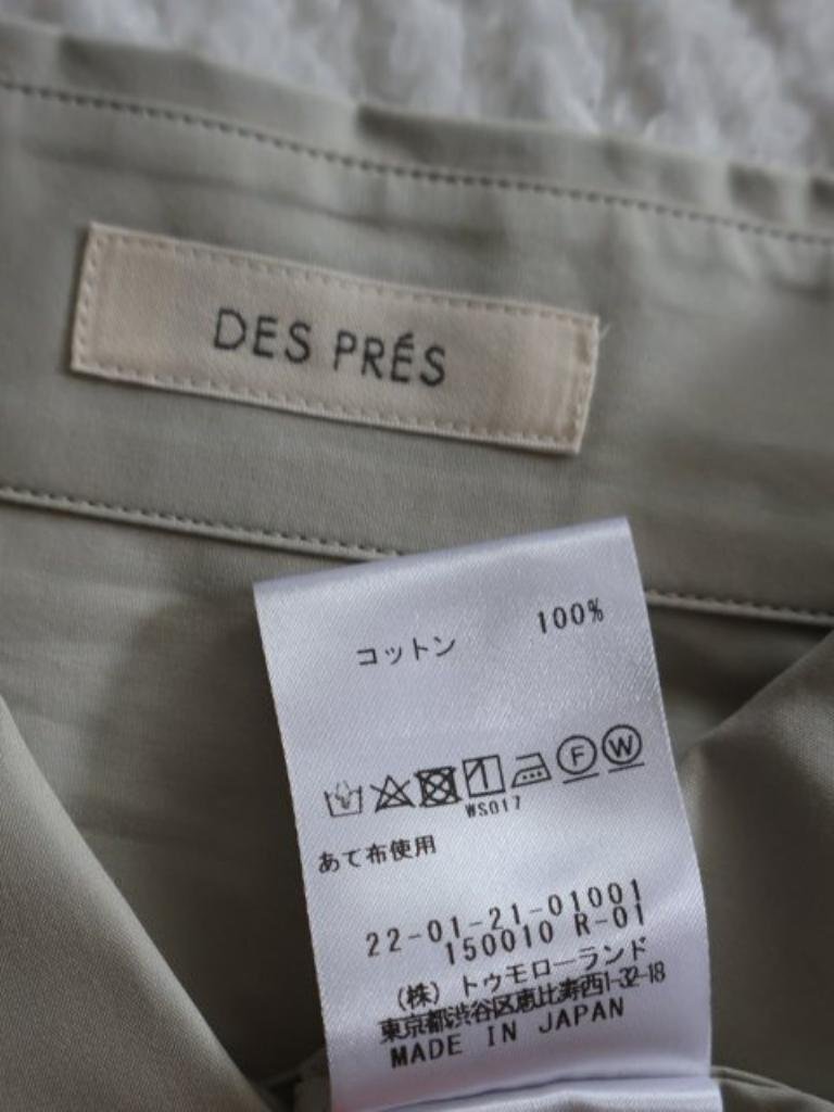 【送料込】DES PRES デプレ (トゥモローランド) ベーシックコットンレギュラーシャツ Mサイズ くすみミントグリーン 長袖 6453937