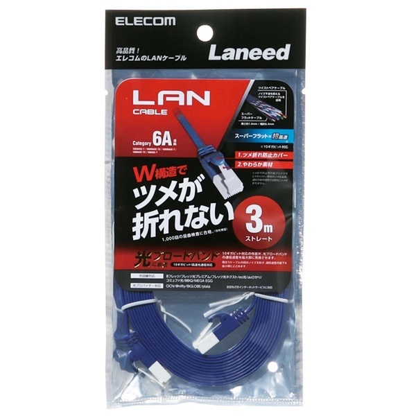 | 製品 | Cat6A準拠LANケーブル フラット・ツメ折れ防止タイプ |