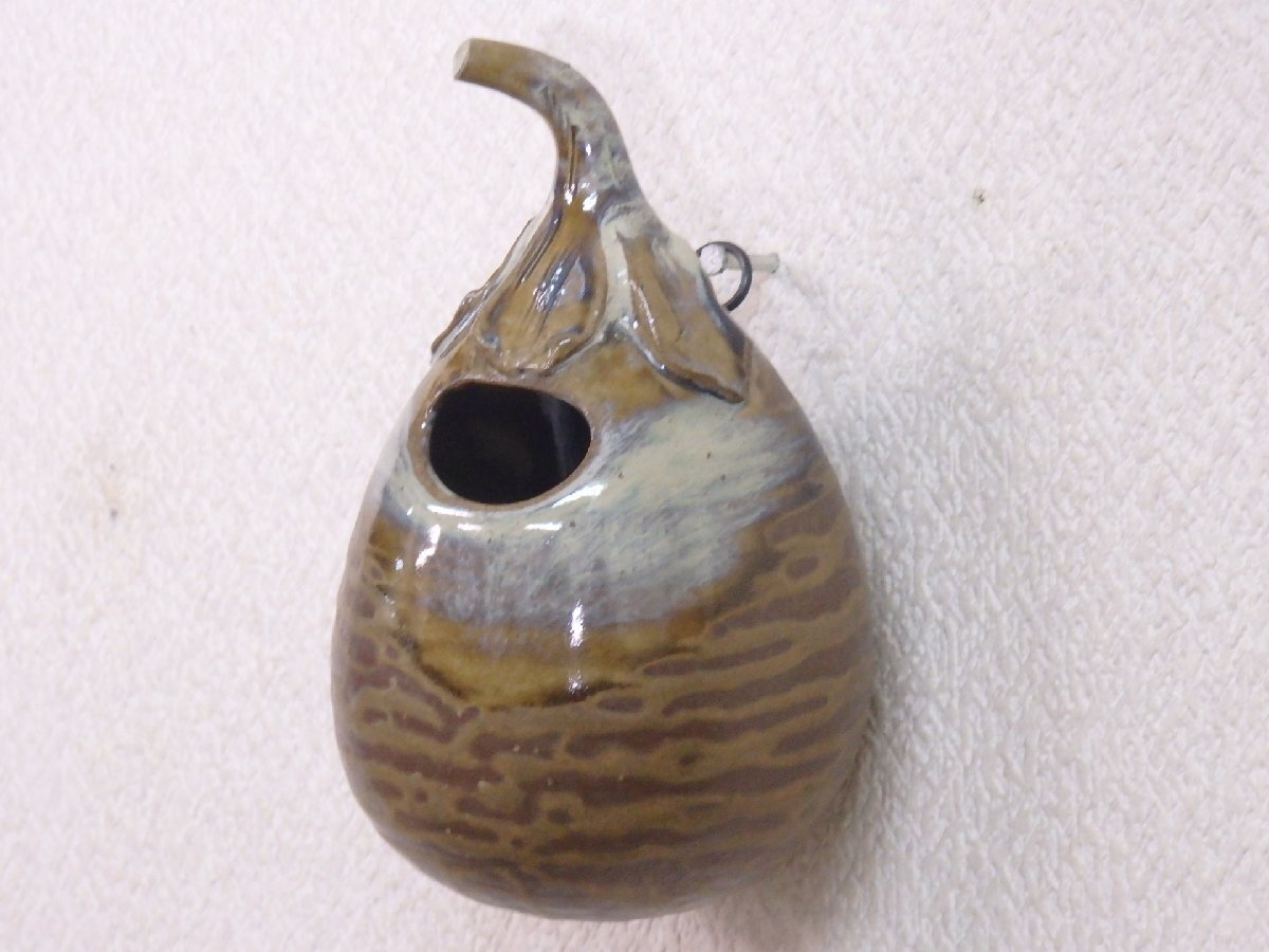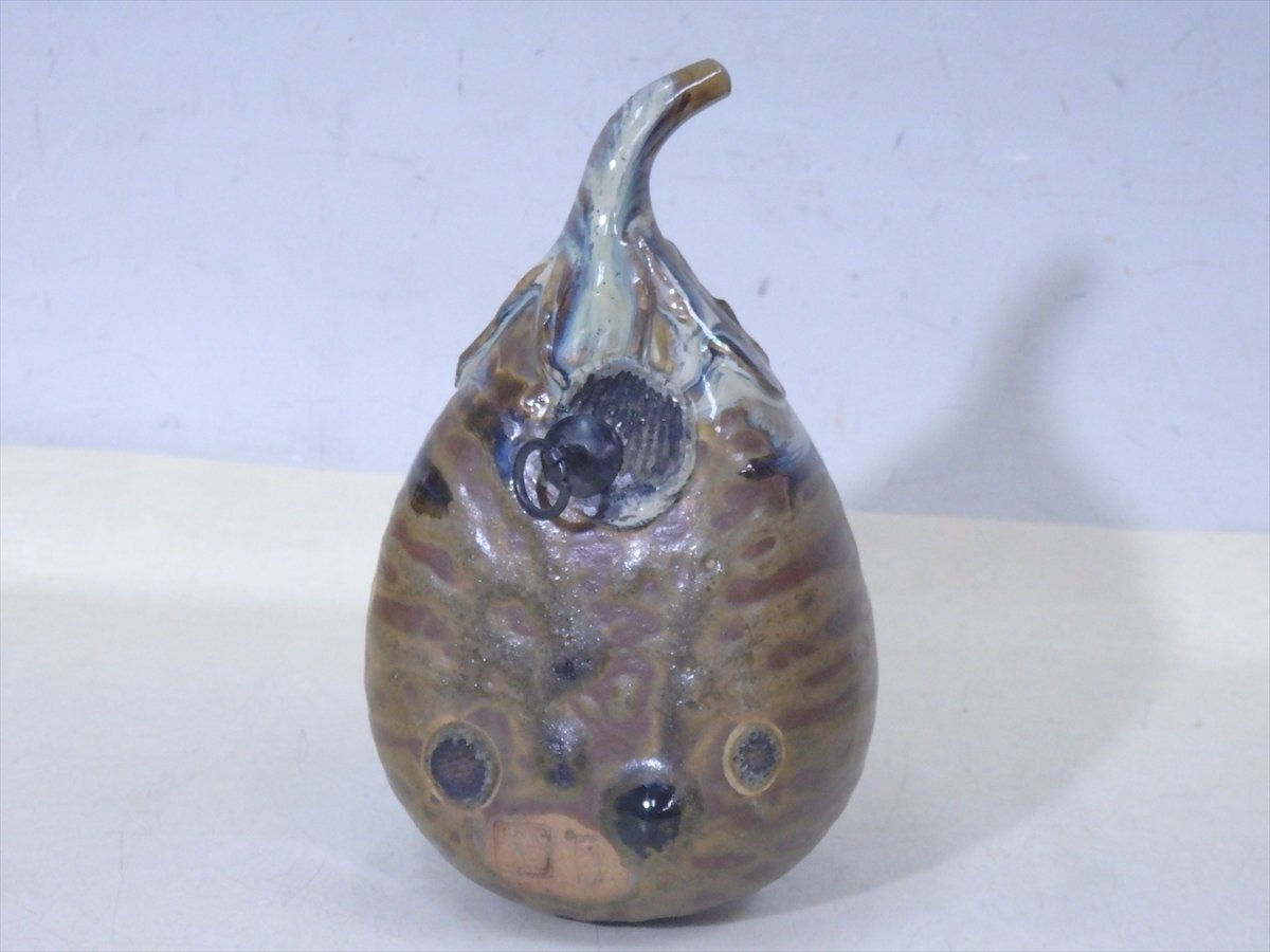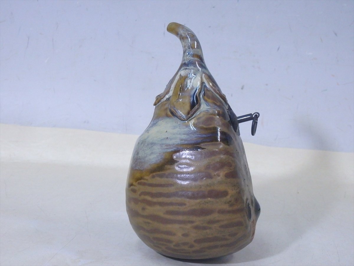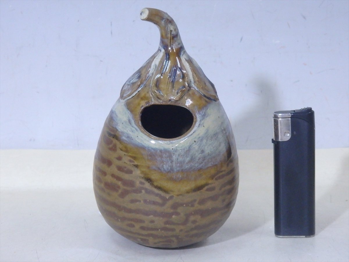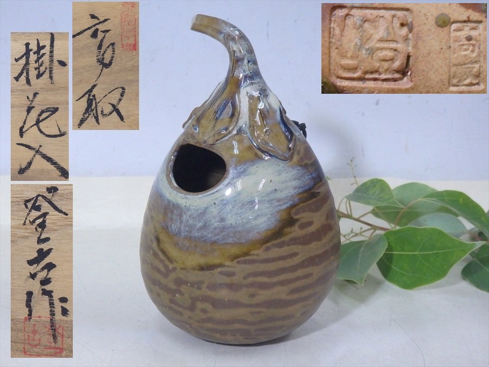 ★茄子の形が粋!笹山登古作【高取焼 掛花入 共箱】サイズ:9.2×8.5×高さ15.5cm 茶道具 茶器 茶花に!