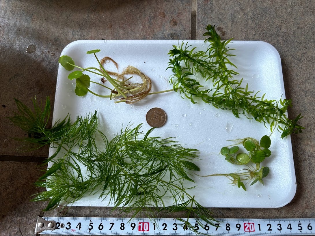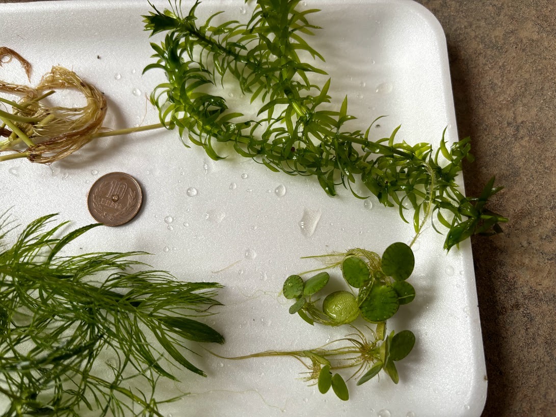 気をつけるようにはしていますが、レッドラムズホーンやサカマキガイ、その他の浮き草や水草が少し混入してしまうかもしれません。