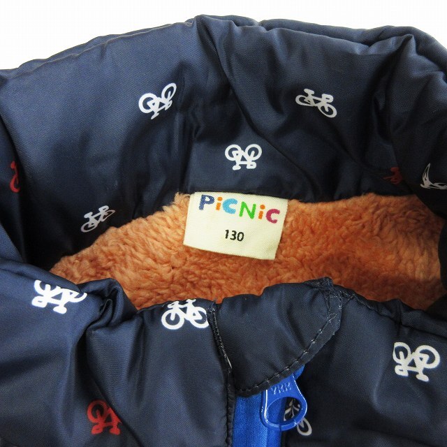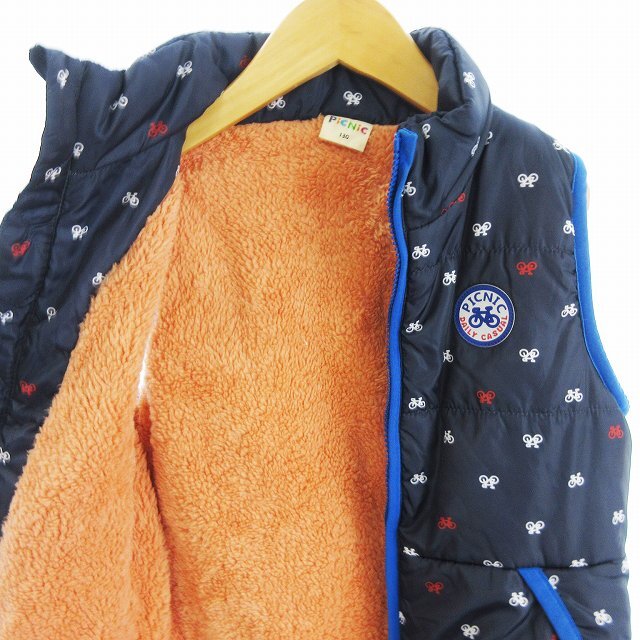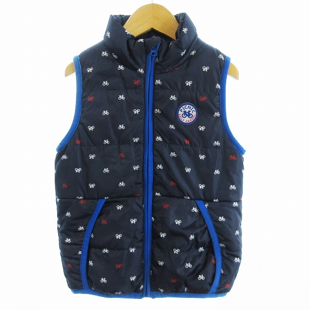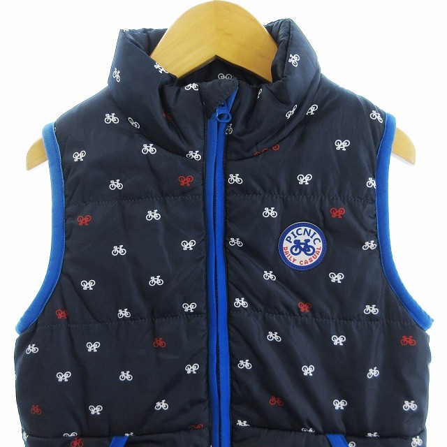 ミキハウス mikihouse PICNIC 中綿ベスト 前開き 裏ボア 自転車 総柄 ■GY14 キッズ