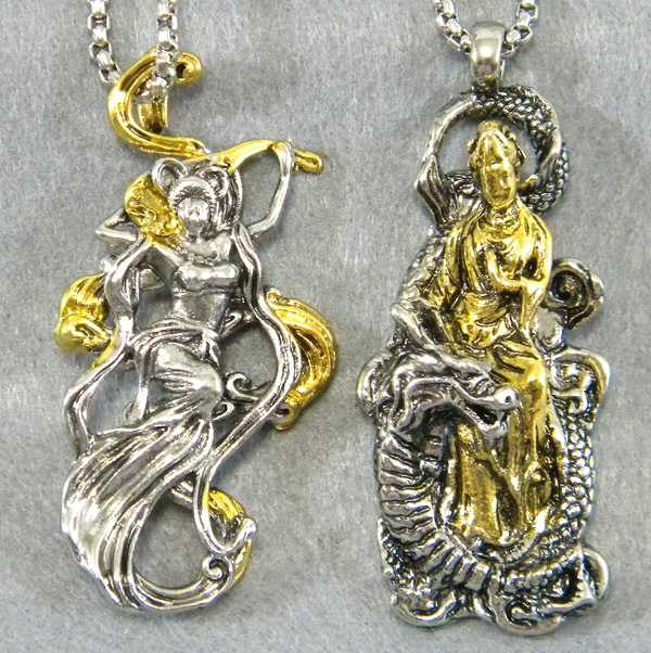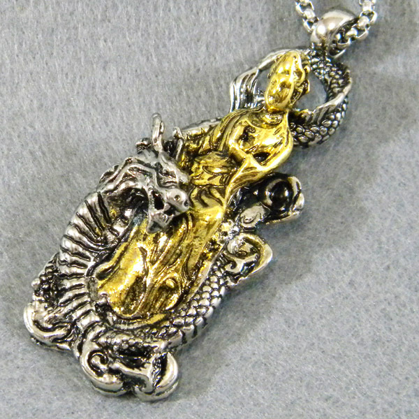 ★ 龍上観音菩薩(騎龍 龍頭 龍神)& 飛天(弁天・弁才天・弁財天) ペンダント ★ 送料無料 ★