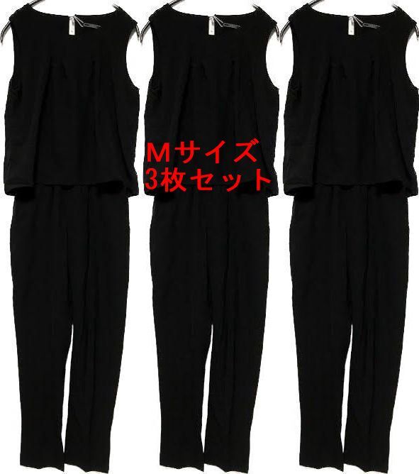 5080/新品 3枚セット オールインワン サロペット 黒ブラック M パンツ セットアップ