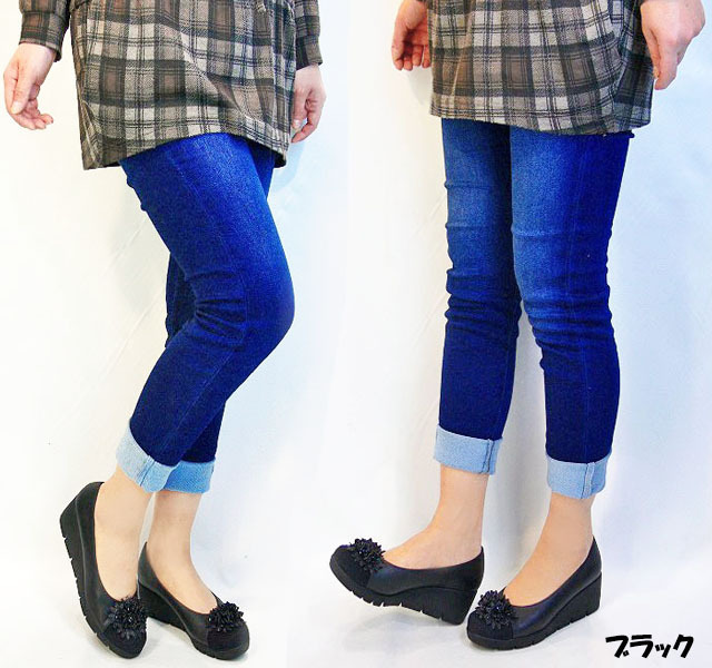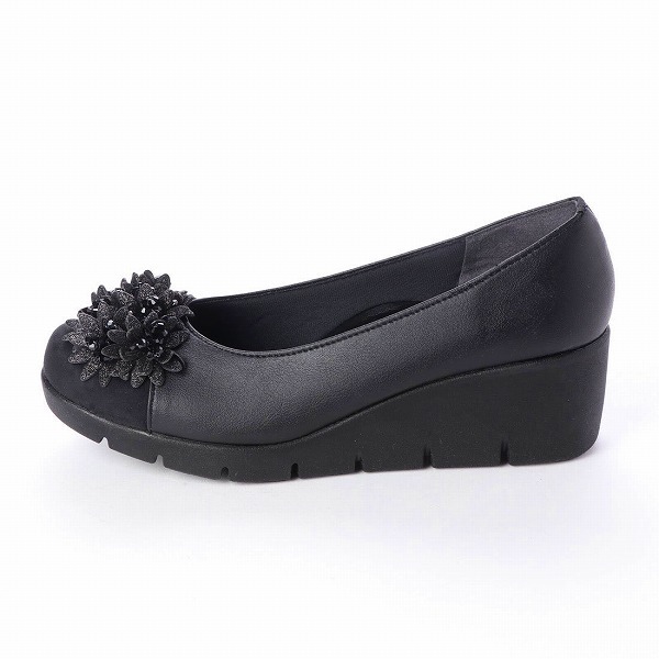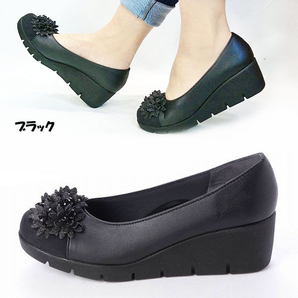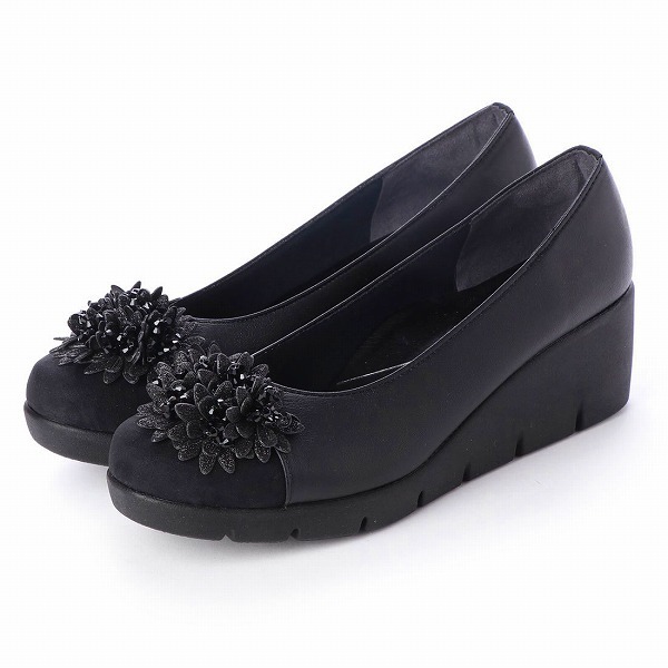36lk 送料無料 ファーストコンタクト パンプス フラワーデザイン 日本製 痛くない 母の日 ウェッジパンプス コンフォートシューズ 走れ