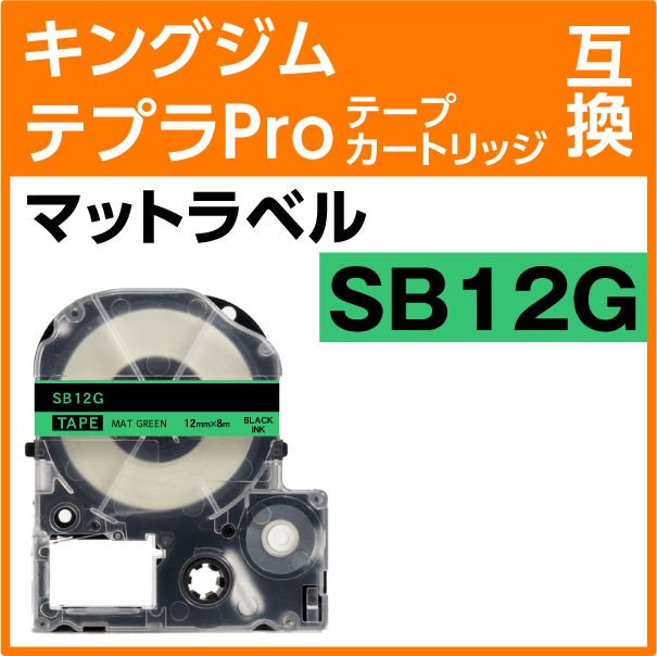 キングジム テプラPro用 互換 テープカートリッジ SB12G マットラベル 緑地 黒文字 12mm