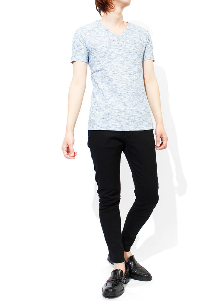 商品名 | 【新品】 L 杢ネイビー(半袖) Tシャツ メンズ 大きいサイズ 小さいサイズ Vネック 長袖 無地 テレコ素材 ストレッチ カットソー |