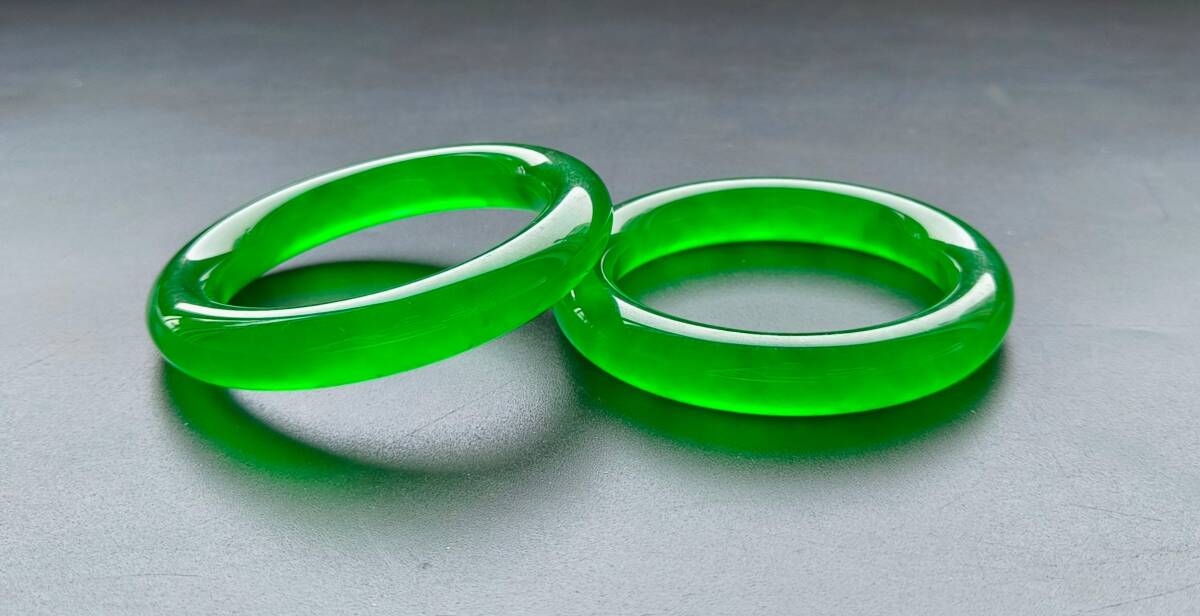 人間国宝 和田玉【竜石種翡翠の腕輪一対です】中国古美術 中国骨董 工芸品 彫刻品 時代物 本物 珍品旧蔵 伝世家珍 | |||