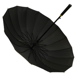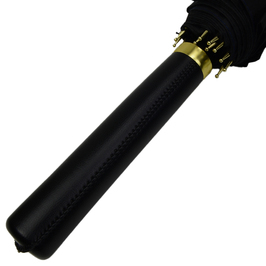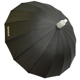 ボタンで展開するワンタッチ式、傘の骨が16本ある強風に強い構造。