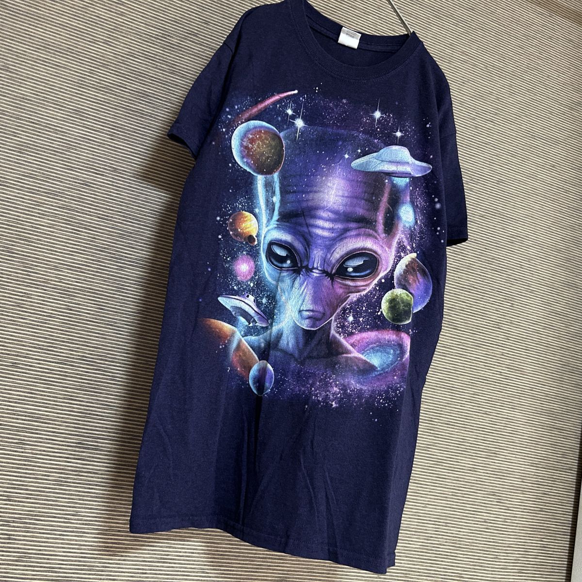 【ギルダン】半袖Tシャツ 紫 宇宙人 アート UFO グレイ @7 | |