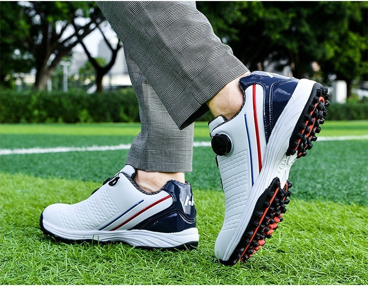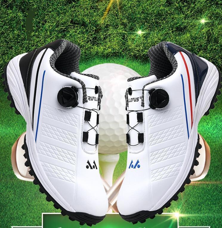 ゴルフシューズ メンズ 新品 ダイヤル式 4E 幅広い 男女兼用フィット感 軽量 運動靴 スポーツシューズ 防水 防滑 耐磨 弾力性 白と青