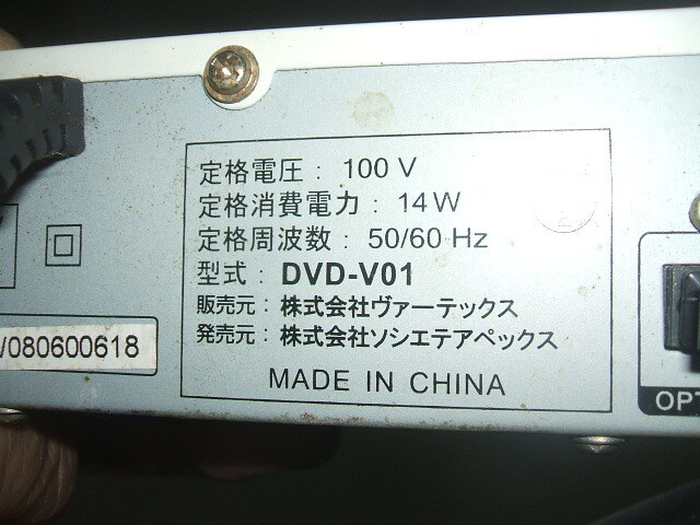 2008年 VERTEX DVDプレーヤー DVDーV01 使用確認済 割と綺麗