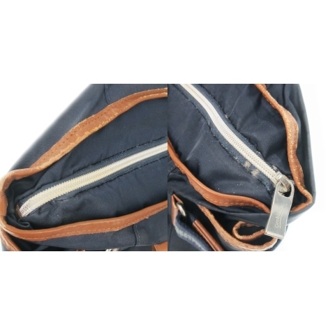 【状態】この商品には下記のようなダメージがあります。 ・ハンドルのレザー生地に変色 ・レザー生地の劣化 ・ナイロン生地全体にスレや薄い汚れ ・金具のくすみ ※全体的に中古品としての使用感と上記のようなダメージがありますが、通常使用には支障のない商品です。 掲載写真や記載内容をご確認いただき、ご理解の上ご購入ください。