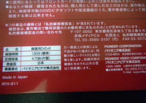 Pioneer DVD-R 120分 4.7GB 4枚組 日本製 新品未使用品
