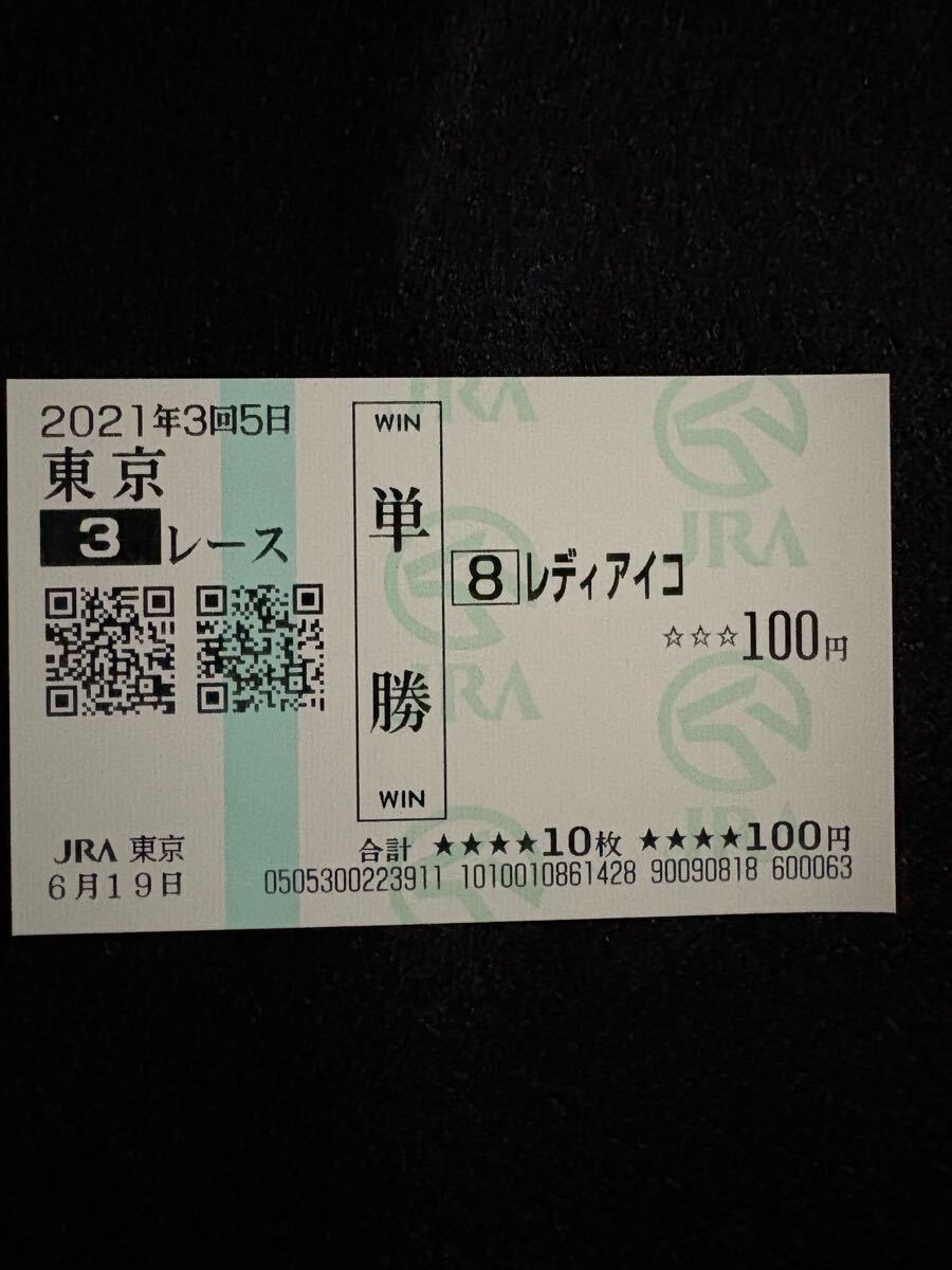 レディアイコが3歳未勝利戦に出走した際の、現地単勝馬券です。