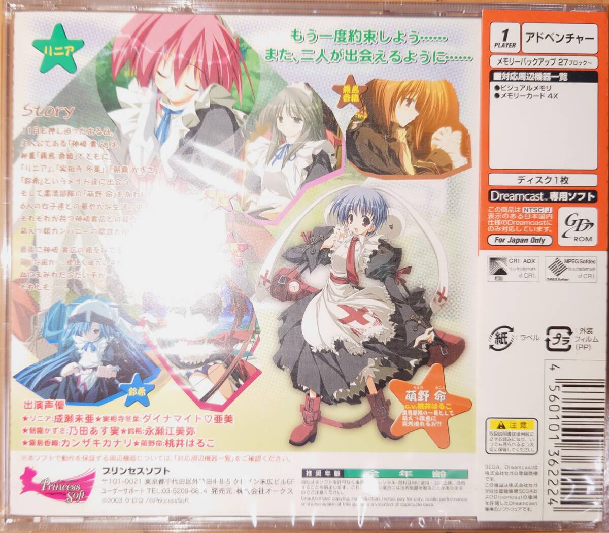 ご覧頂きありがとうございます。 【新品未開封】DC ドリームキャスト モエかん ~萌えっ娘島へようこそ~ プリンセスソフト ケロQ になります。 実家に大切に保管してあったお品物です。久しぶりに遊んでみたい方はいかがでしょうか? ■状態■ パッケージなどに大きな傷などはございませんが、あくまで一度人の手に渡ったお品物になります。 新品未使用ではありますが、長期保管している商品ですので多少の瑕疵についてはご容赦下さい。 ■お願い・注意など■ 落札後、48時間以内に取引連絡をいただける方、また、3日以内(土日除く)にお振込みいただけるの方の入札をお待ちしております。 お品物を受け取り後は、速やかに受け取り連絡をお願いいたします。 入札、落札後のキャンセルはご遠慮ください。 ノークレーム・ノーリターンでお願い致します。 悪評価が多い方は当方の判断で削除することがあります。 かんたん決済は入金確認後の発送とさせていただくことがあります。 |
