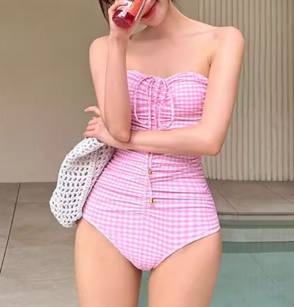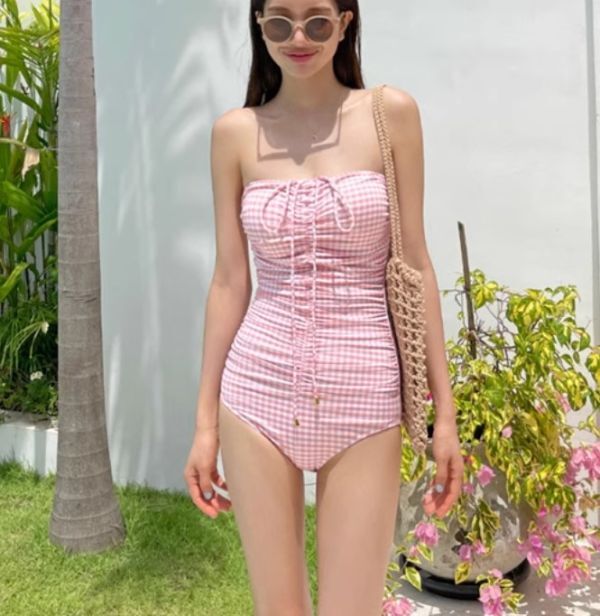★★★ レディース 水着 ワンピース チューブトップ チェック柄 GX50