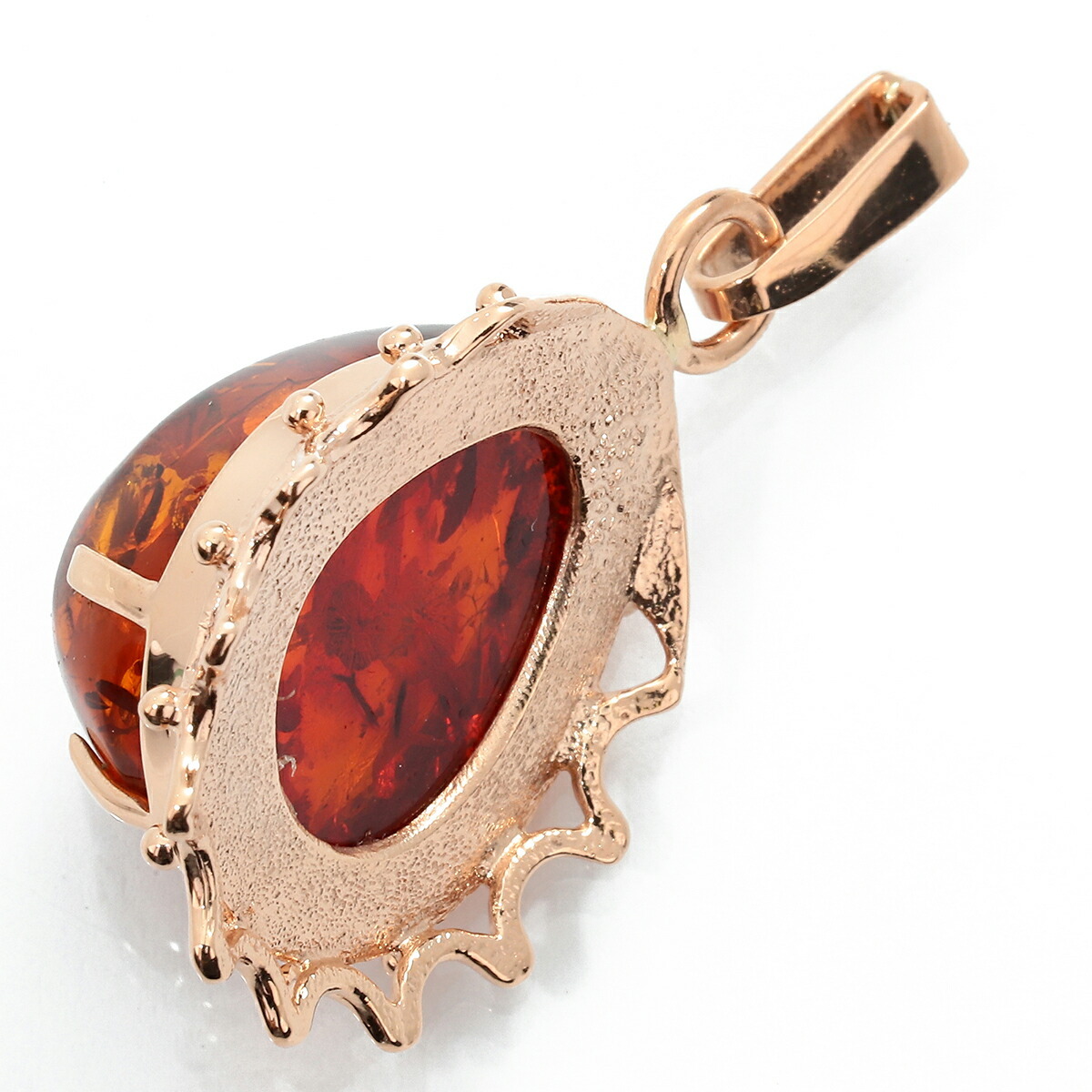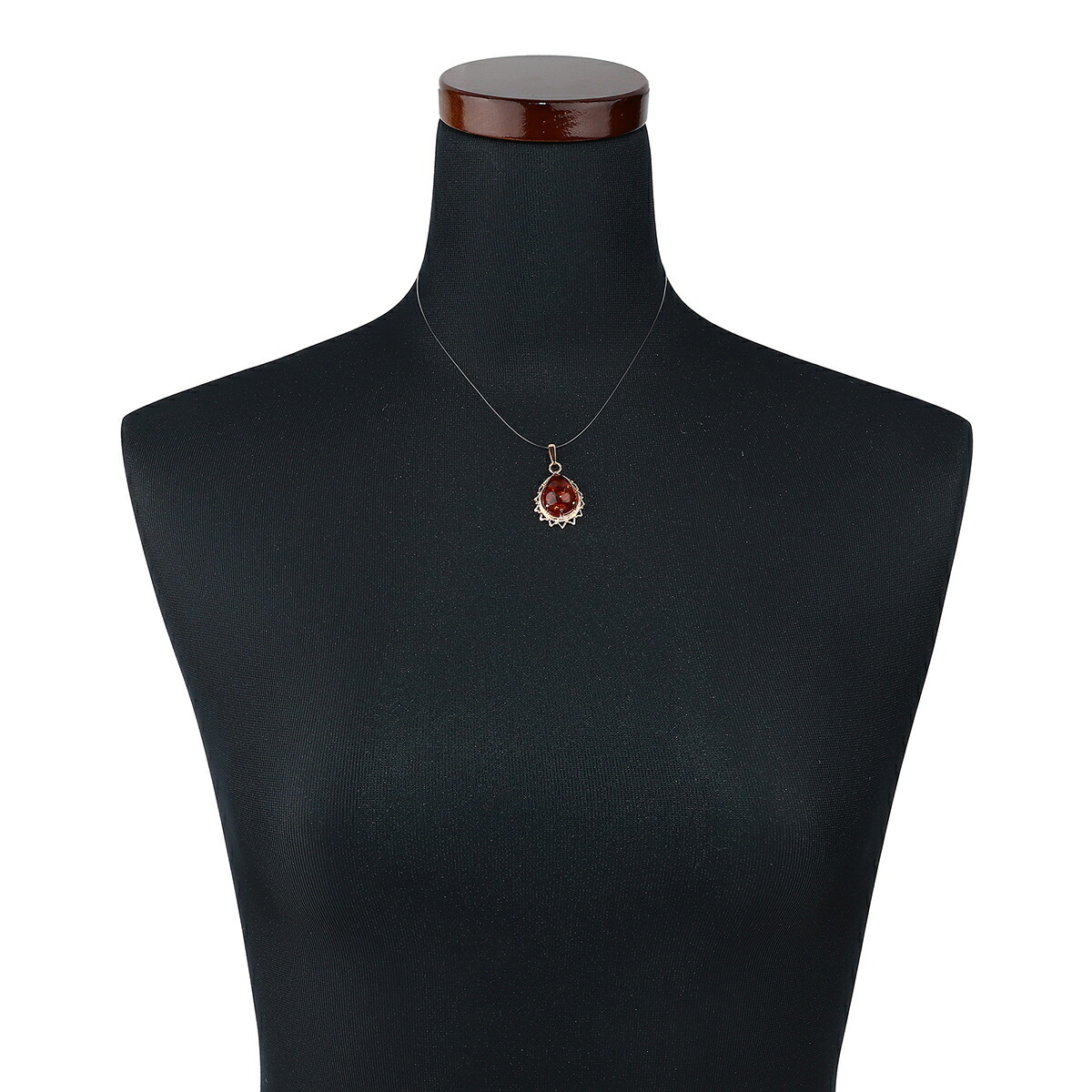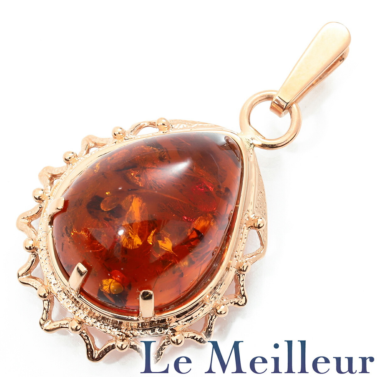 ペアーシェイプドカットの大粒琥珀が、やわらかな艶めきを放つペンダントトップ。深みのある琥珀の輝きが胸元に静かなインパクトを与え、エレガントな装いをいっそう引き立ててくれます。落ち着いた華やかさと気品をそっと添えてくれる一品です。
