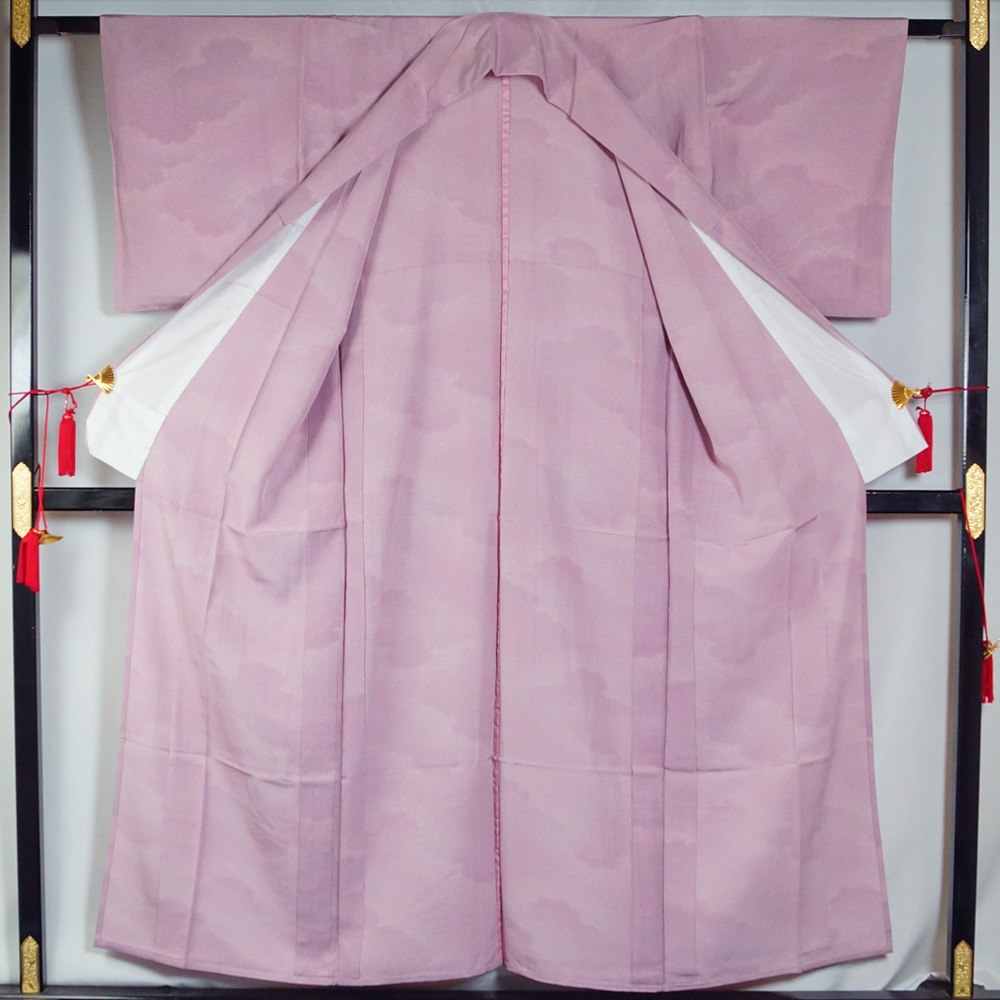 | 商品説明 | 正絹ちりめん地に、薄葡萄色系ぼかしの雲模様が染められた単衣の小紋です。 |