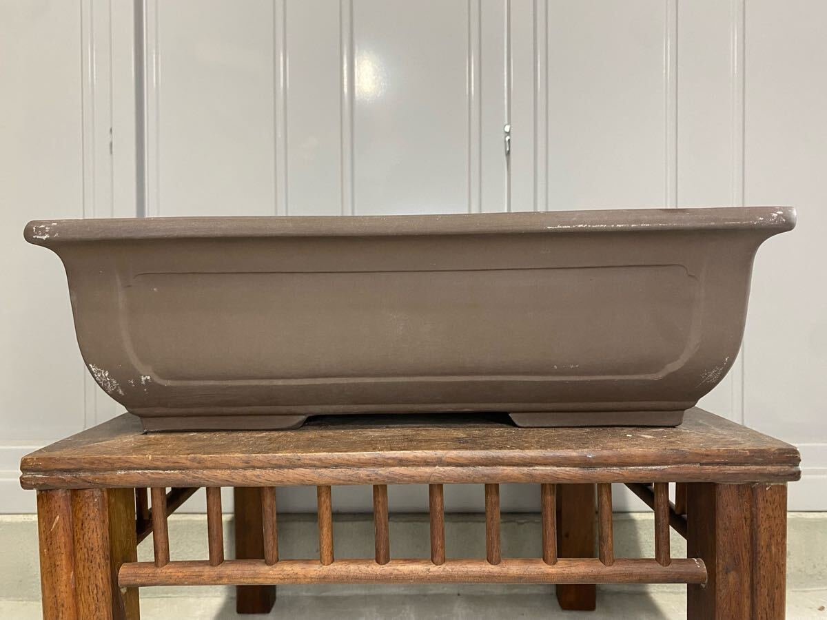 長方で鳥泥の盆栽鉢です。