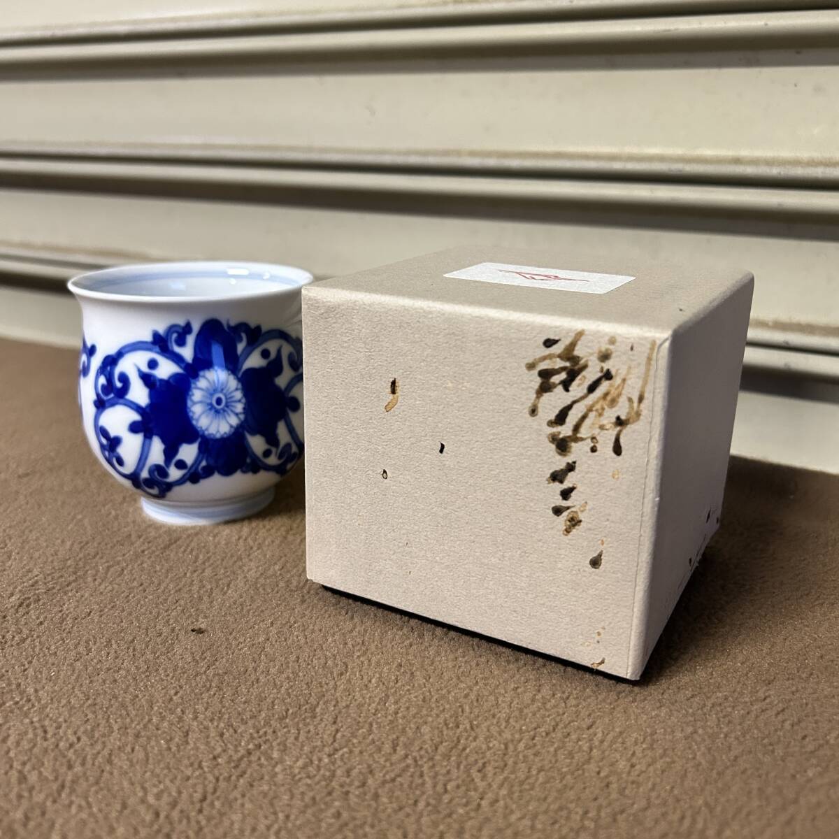 CF57 ★深川製★ 希少 深川製磁 湯呑み 元型大湯呑 染付菊唐草 5