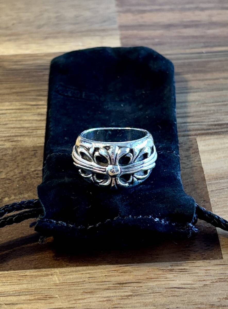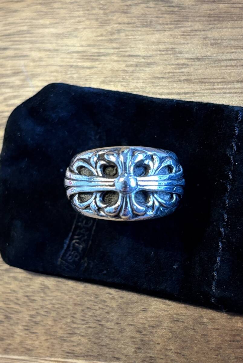 送料無料 CHROME HEARTS クロムハーツ FLORAL CROSS フローラルクロス リング メンズ小指 レディース シルバー SV925 US size6 約11号