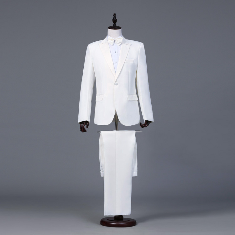新入荷 2点セット ホワイト(白)シングル タキシード ステージ衣装メンズ スーツセット 上着 ズボンXXS -2XL演奏会舞台白2色