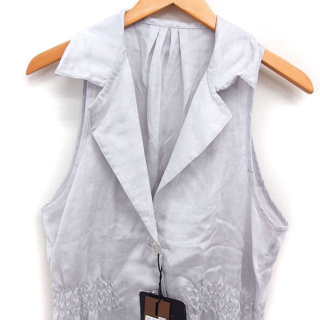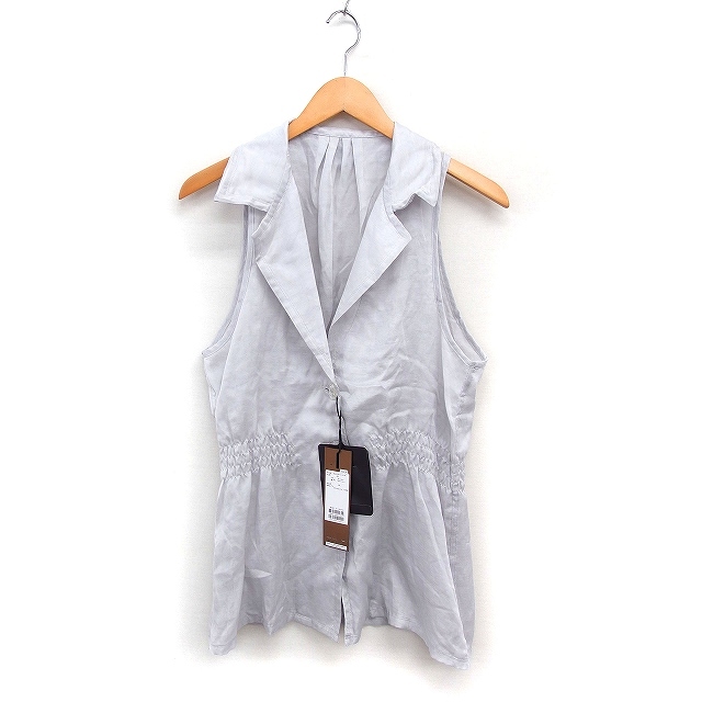 未使用品 ラテンダ LA TENDA タグ付き テーラードカラー ベスト シャツ ブラウス シャーリング 無地 40 ライトグレー /FT10 レディース