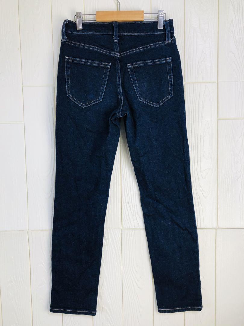 スリムフィットのダークデニムパンツ、スタイリッシュで多用途に使えます。