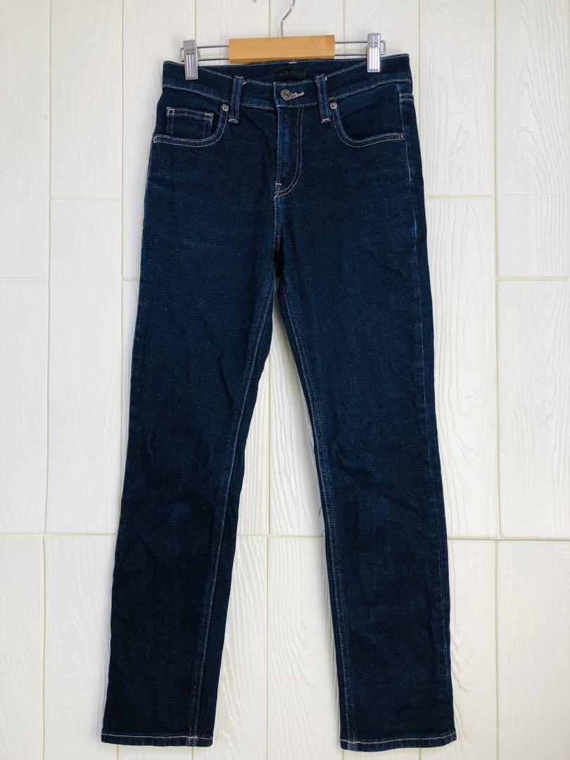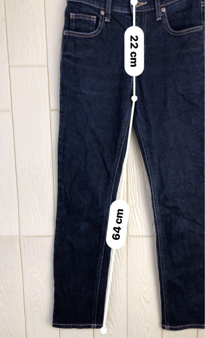 スリムフィットのダークデニムパンツ、スタイリッシュで多用途に使えます。