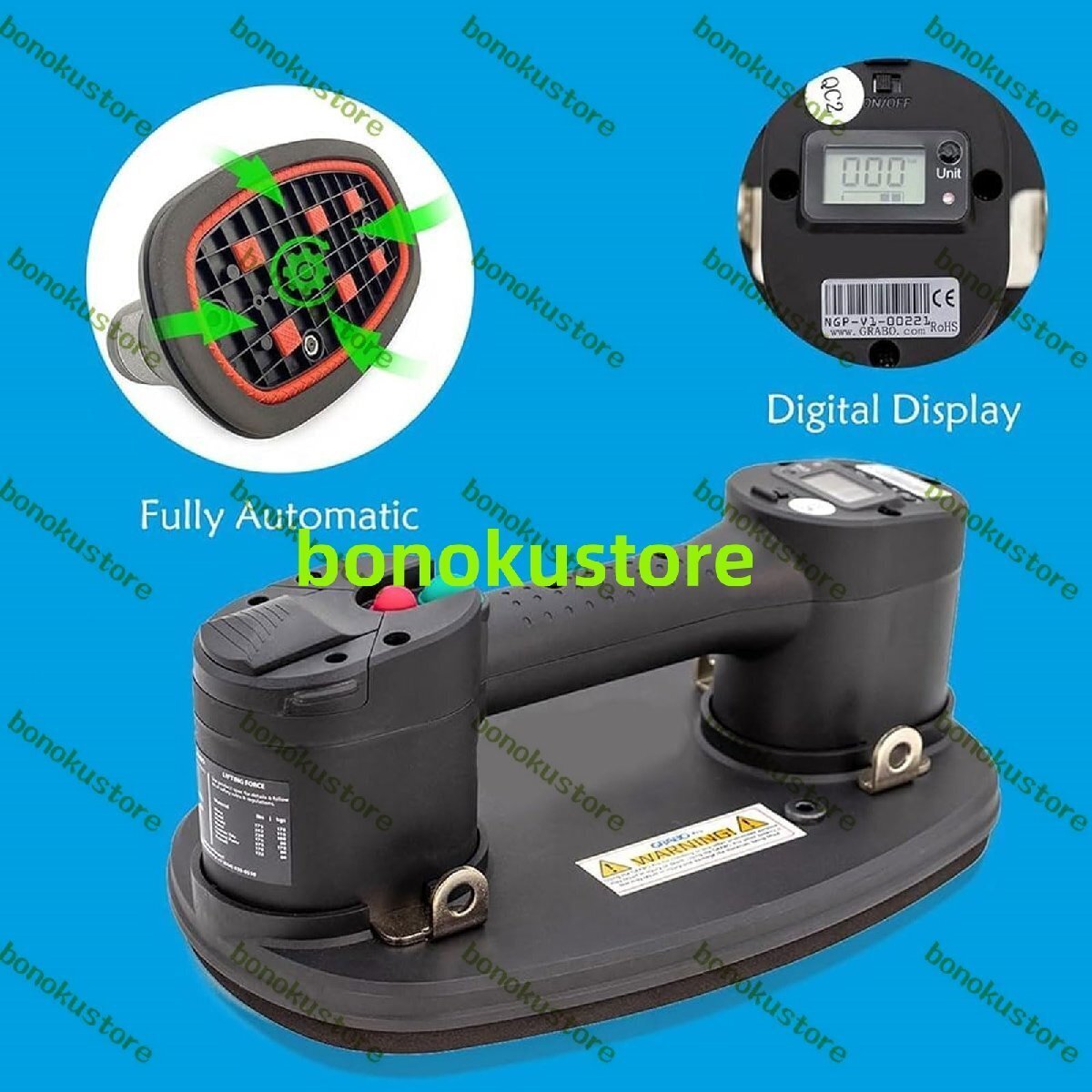 ポータブル電動真空吸盤、16W 吸引カップリフター、自動オン/オフポンプ機能付き、最大吸引力170KG、タイル、ガラス、金属、プラスチック、木材、乾式壁用