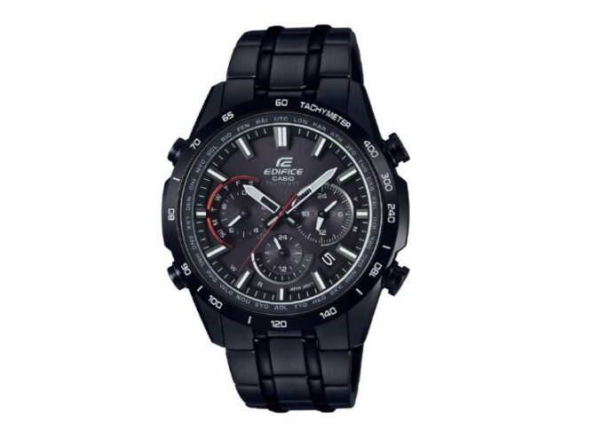 先進の高機能メタルクロノグラフとして進化を続ける「EDIFICE(エディフィス)」の電波ソーラーシリーズEQW-T650に、ブラックをベースにスポーティなデザインを施したカラーモデルの登場です。