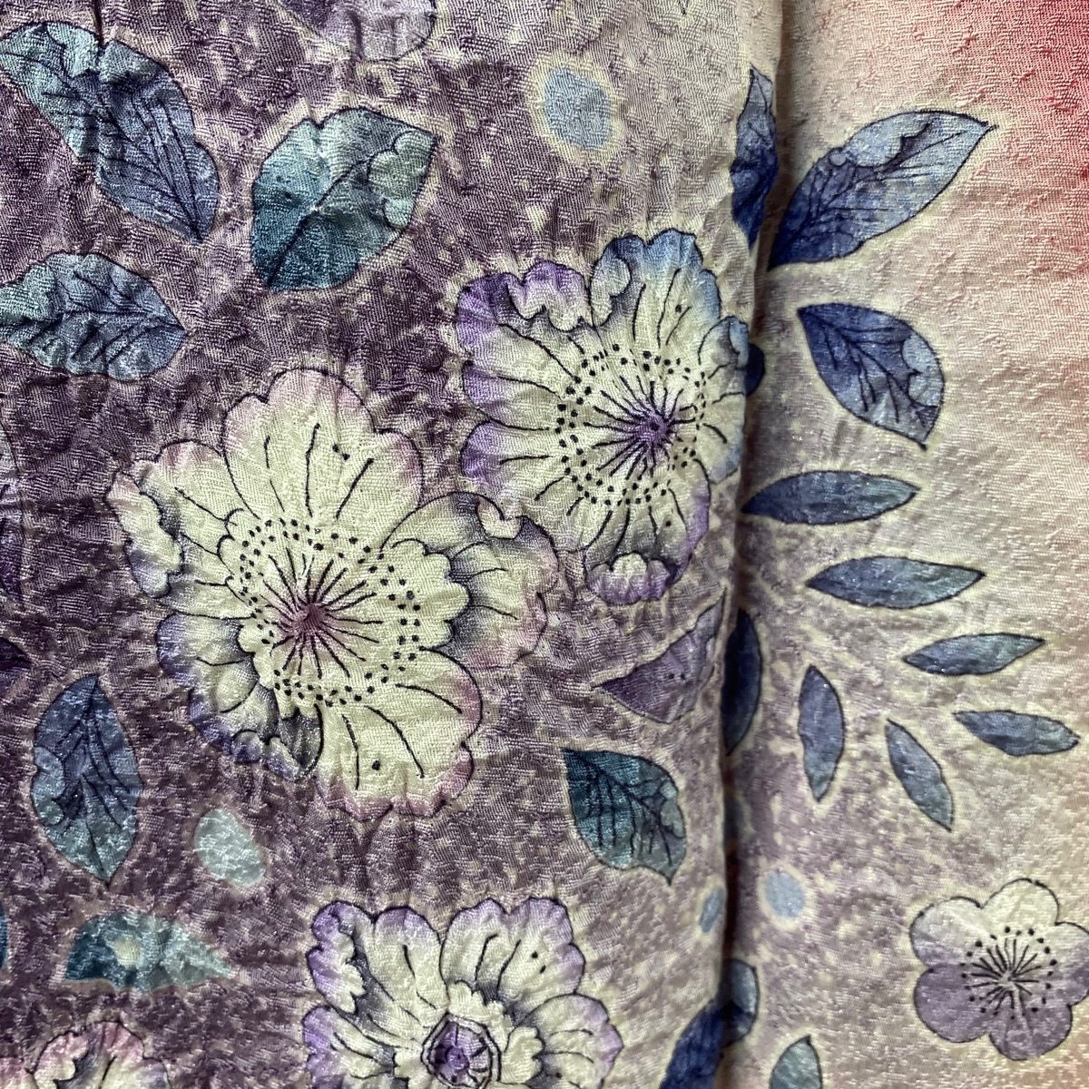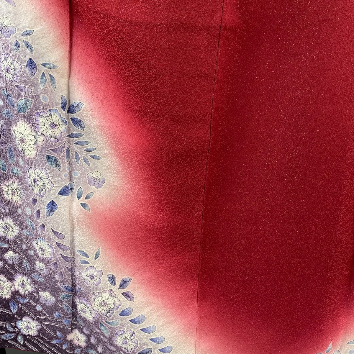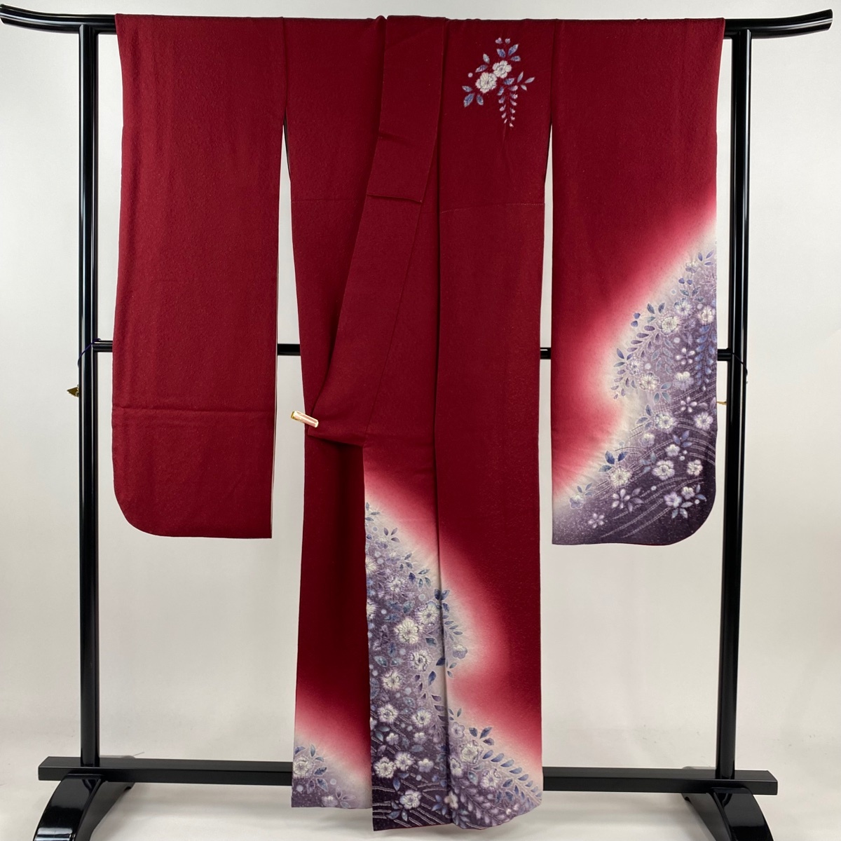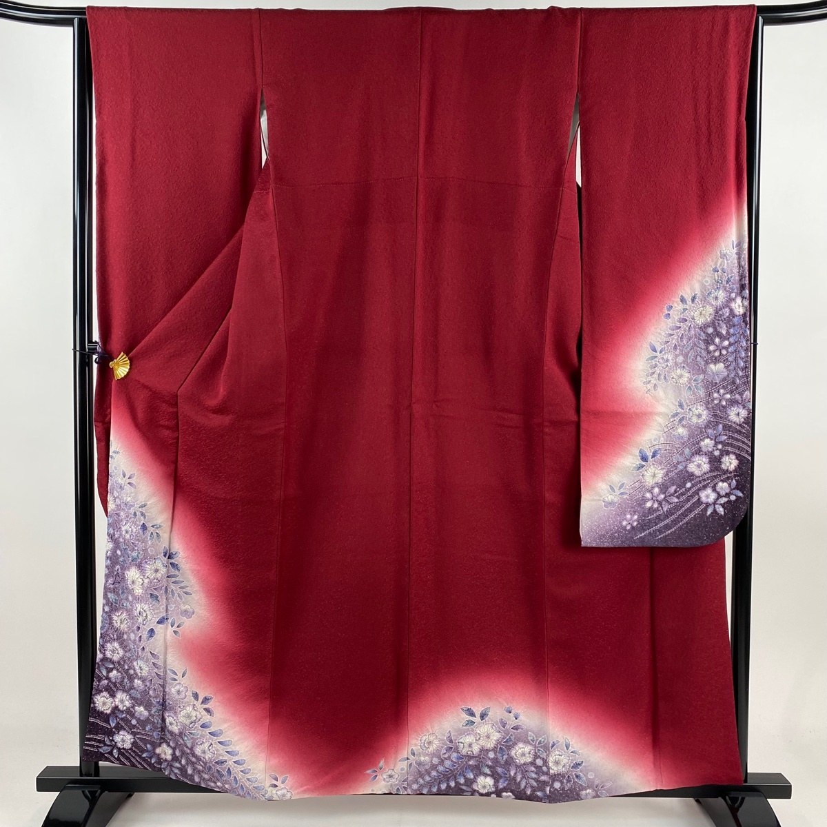 | 振袖 美品 逸品 鈴乃屋 辻が花 銀通し ぼかし えんじ色 袷 身丈158 裄丈65.5 M 正絹 【中古】 |